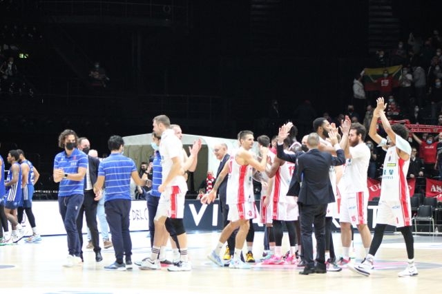 UNAHOTELS REGGIO EMILIA: Thompson 10, Hopkins 13, Baldi Rossi, Strautins 5, Crawford 9, Colombo, Cinciarini 7, Johnson 6, Olisevicius 16, Bonacni, Diouf 6. Allenatore: Caja.