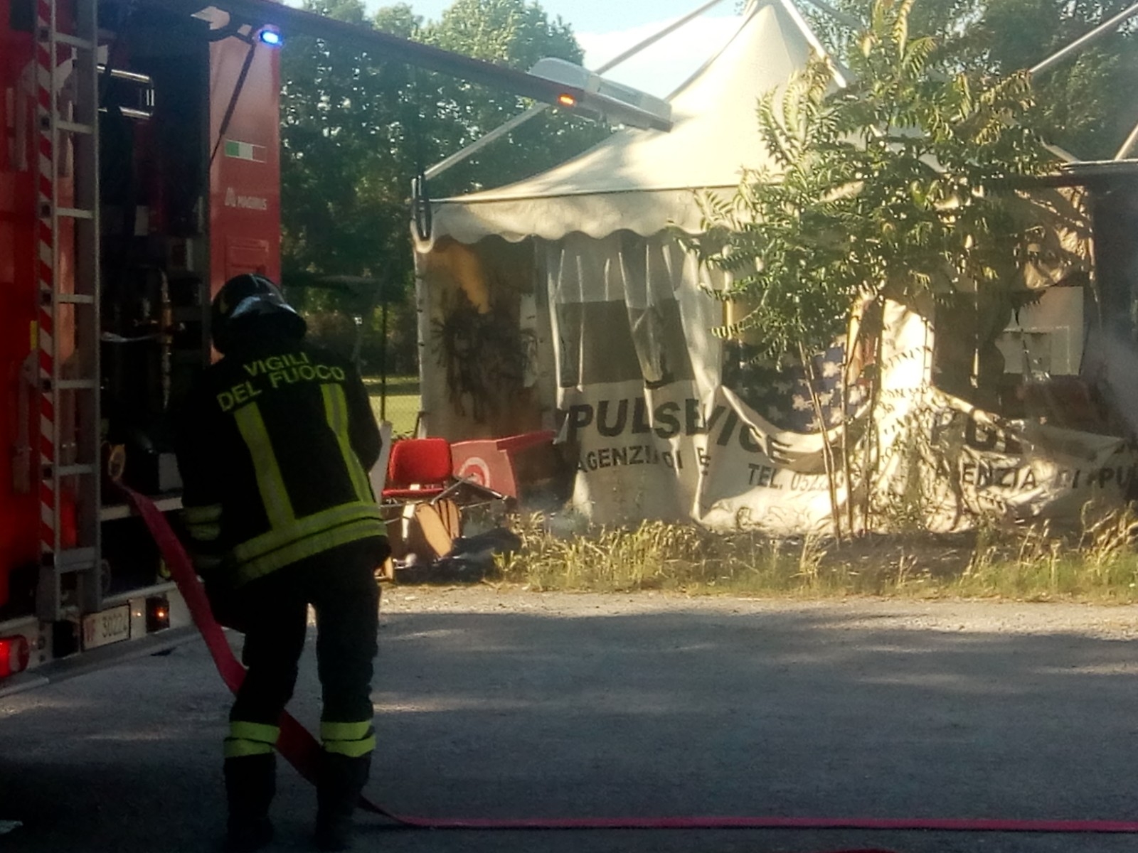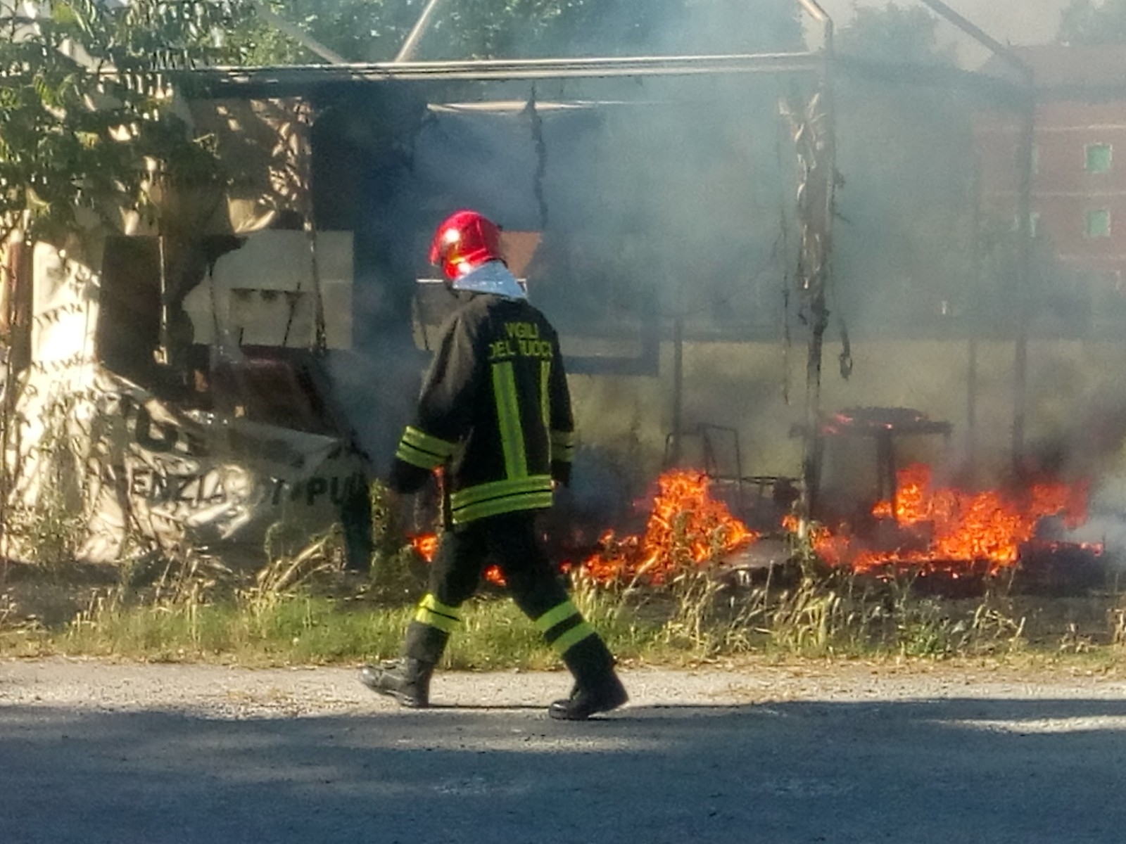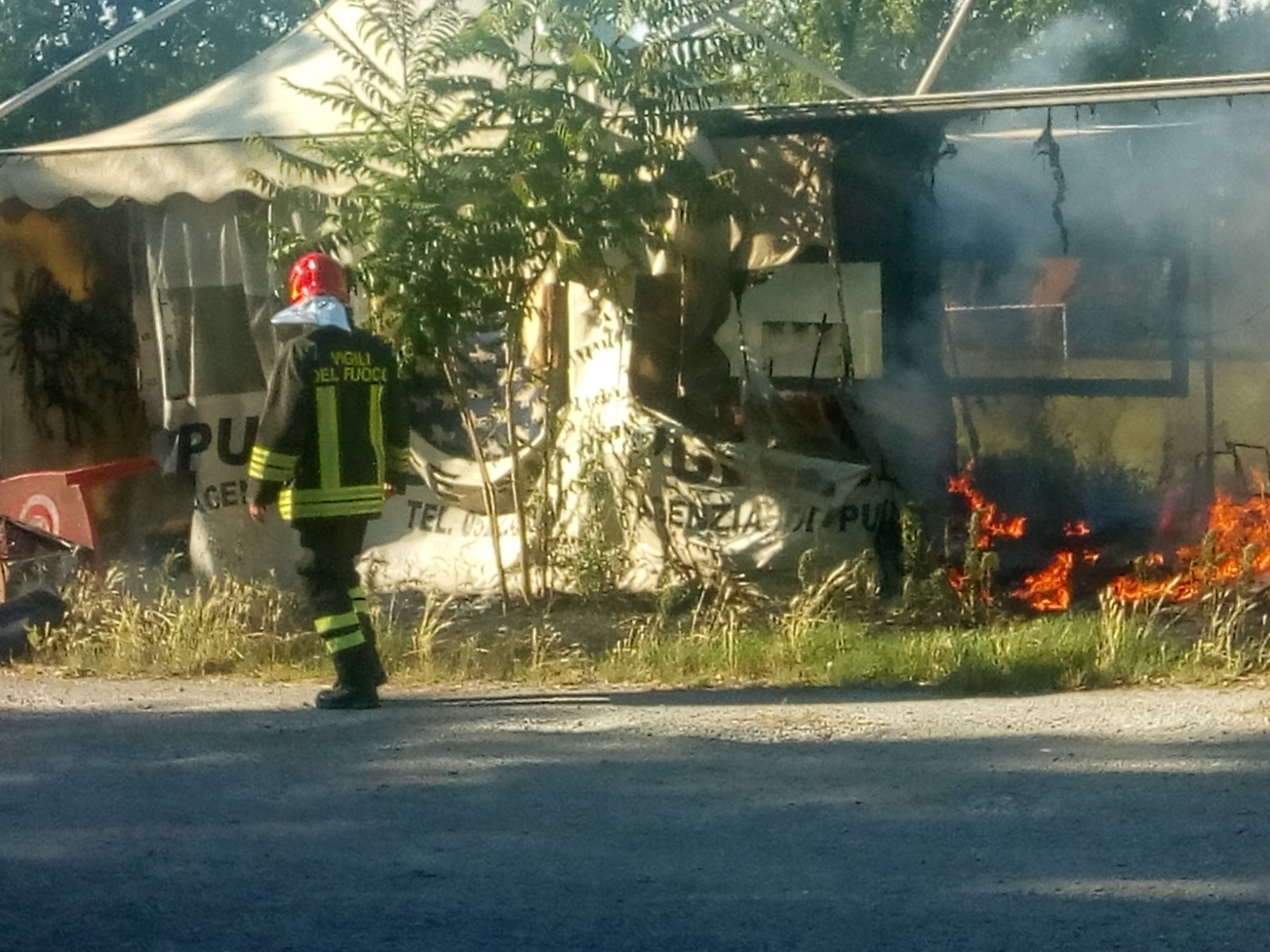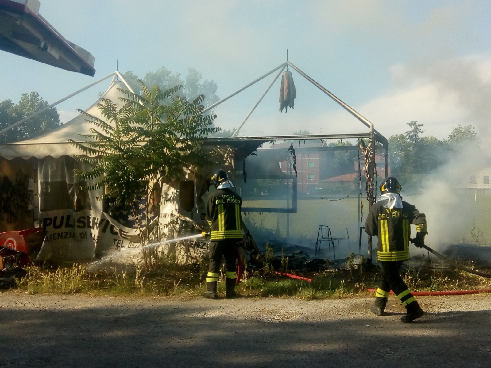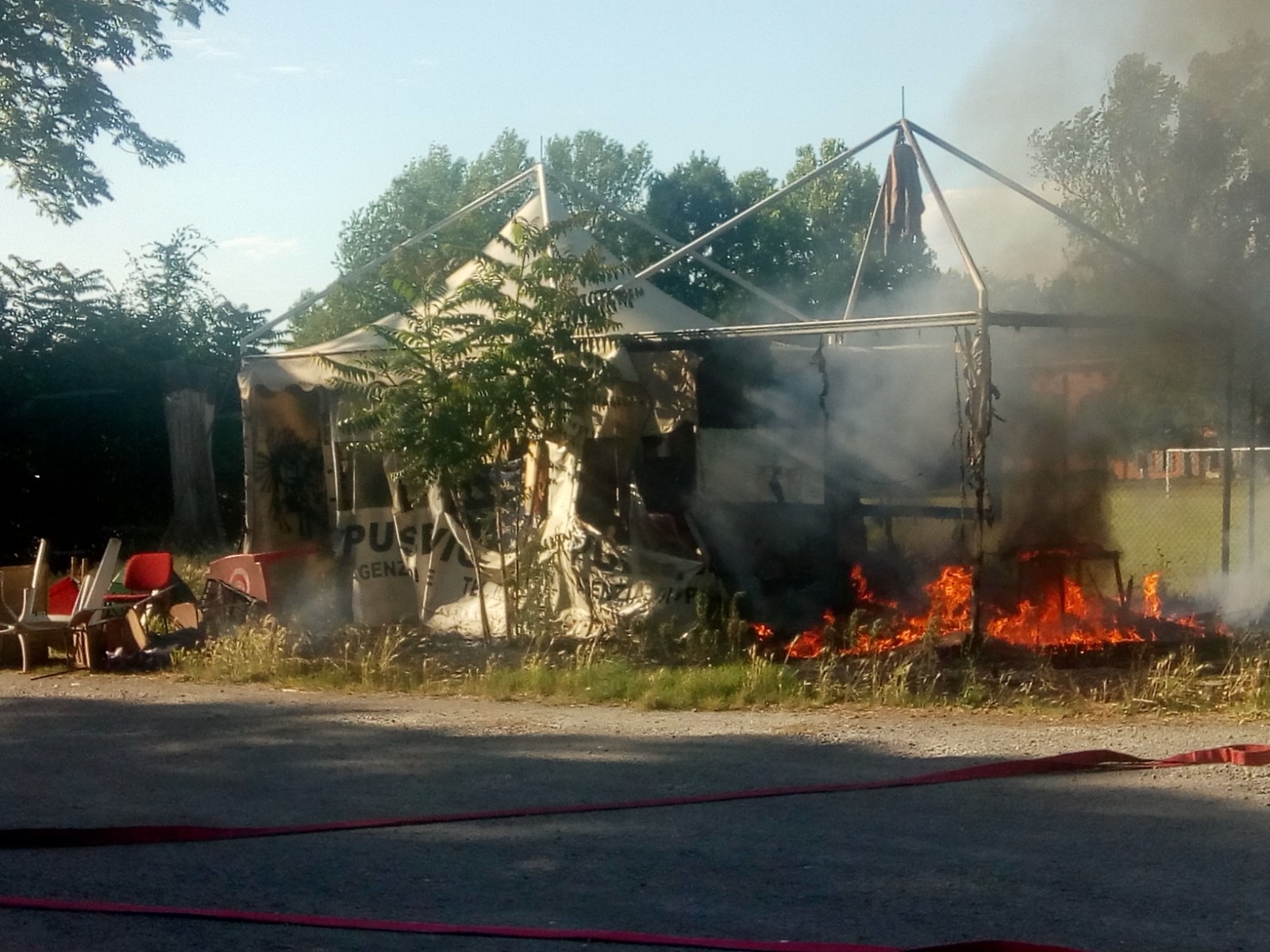 REGGIO EMILIA – Un incendio ha distrutto nel pomeriggio i due gazebo tanto familiari a chi segue la Reggiana. La chiamata ai vigili del fuoco è arrivata alle 17,45. Quando i mezzi sono arrivati in via Agosti, dove da sempre e fino a due anni fa si è allenata la squadra granata, gli uomini di via della Canalina non hanno potuto fare altro che spegnere le fiamme. I gazebo sono nel parcheggio, a ridosso della rete del campo di allenamento, un tempo spazio di attesa per i giornalisti impegnati nelle interviste e cari anche a un ristretto numero di tifosi pensionati, spesso impegnati anche a giocare a carte tra un commento e l’altro sulla squadra. All’interno, come potete vedere dai video, reti per dormire e i segni evidenti di un bivacco. Evidentemente i gazebo erano divenuti rifugio per senzatetto. Tutto a pochi metri dalle ex Reggiane.