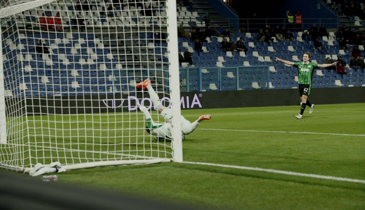 Reti: Pinamonti (S) al 40′ p.t., Berardi (S) al 44′ p.t., e al 17′ s.t.