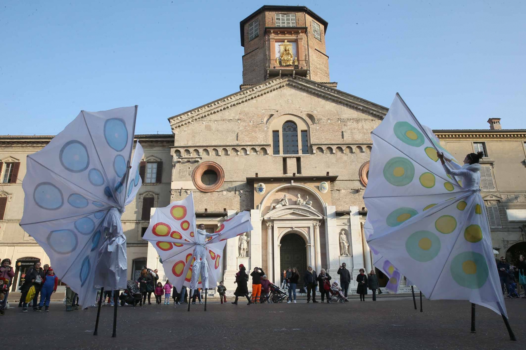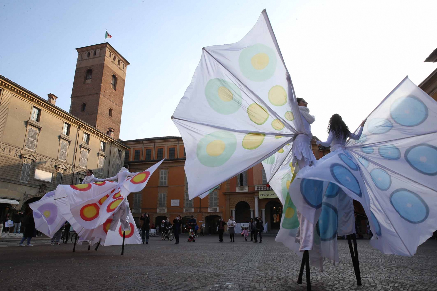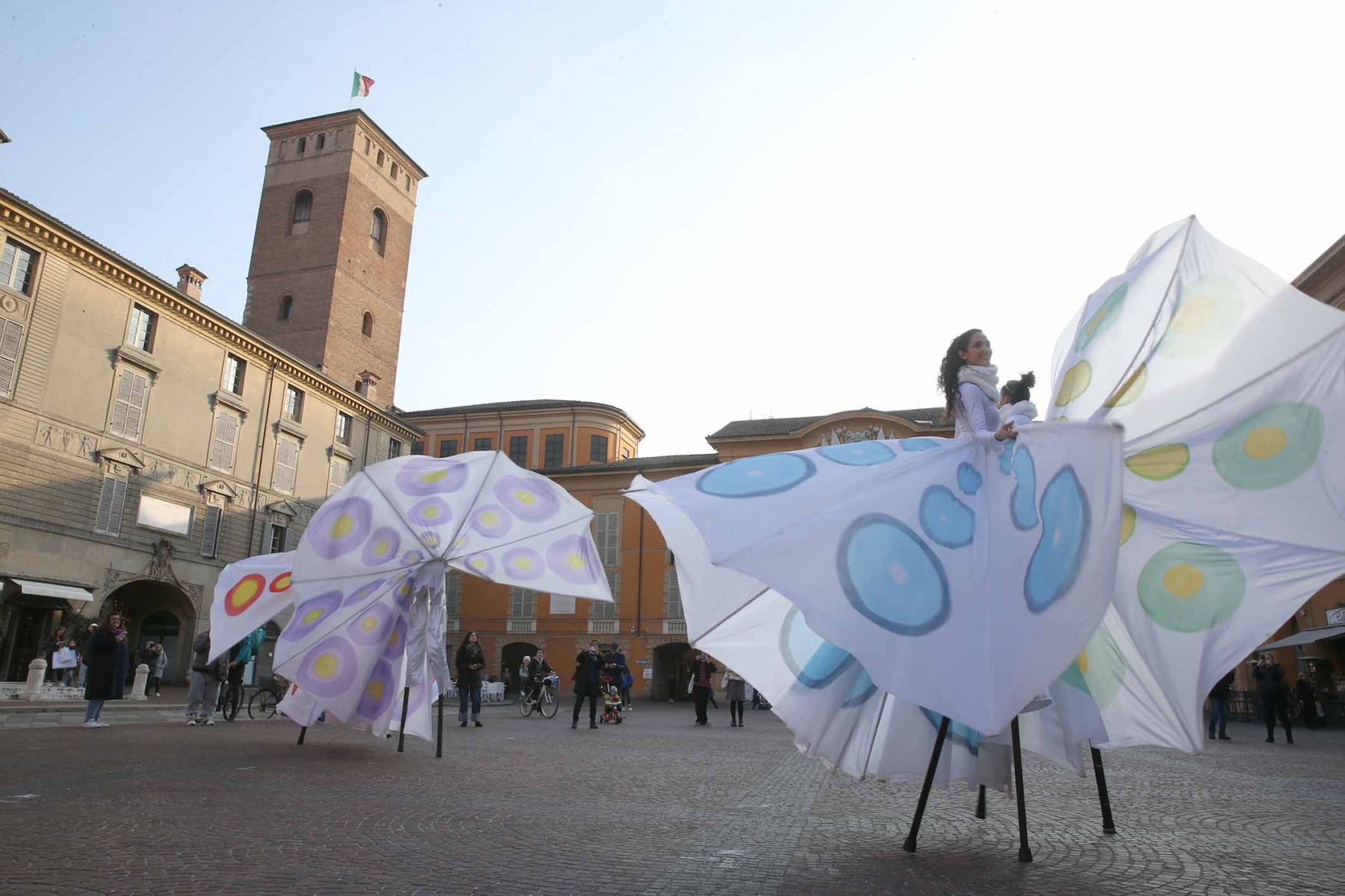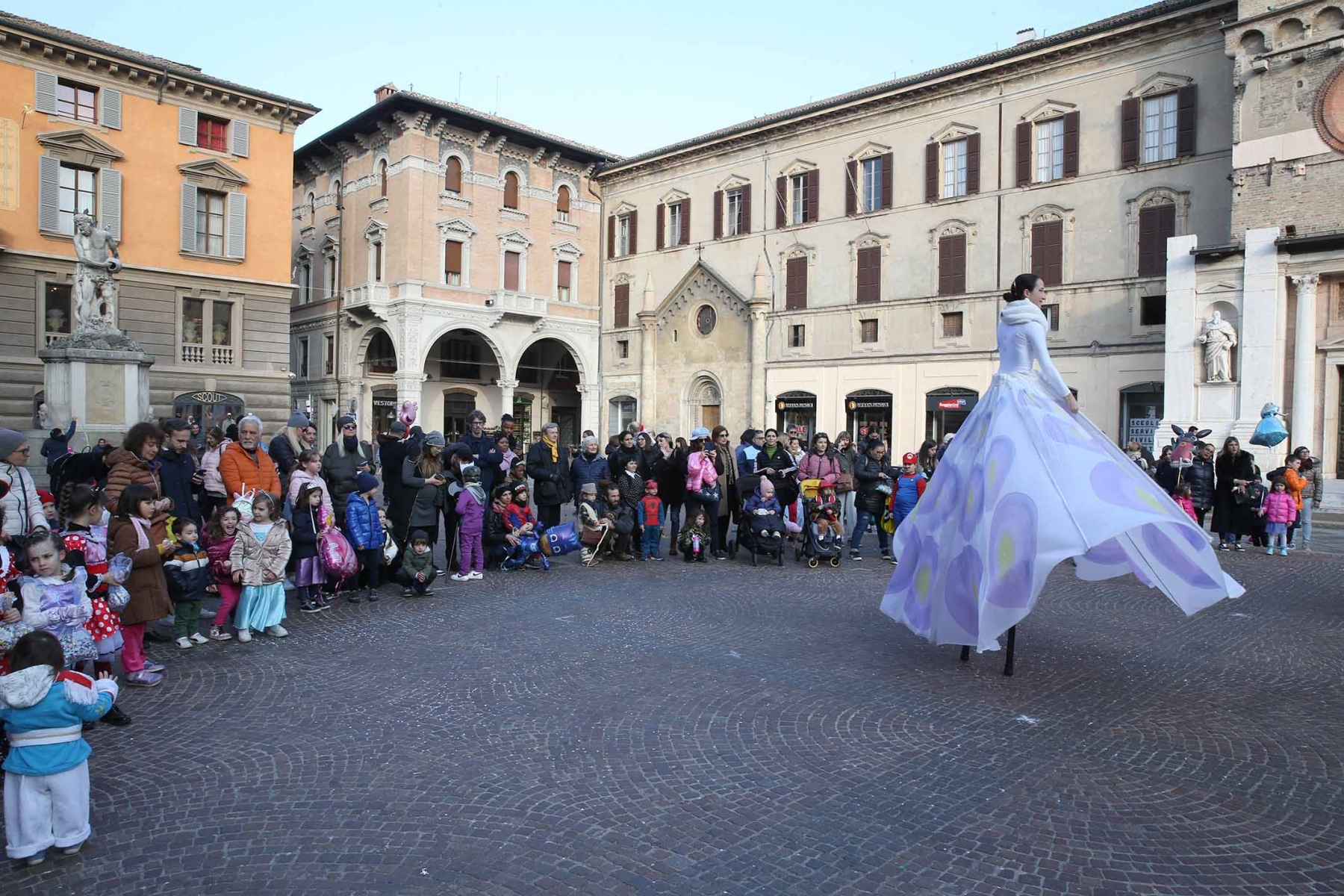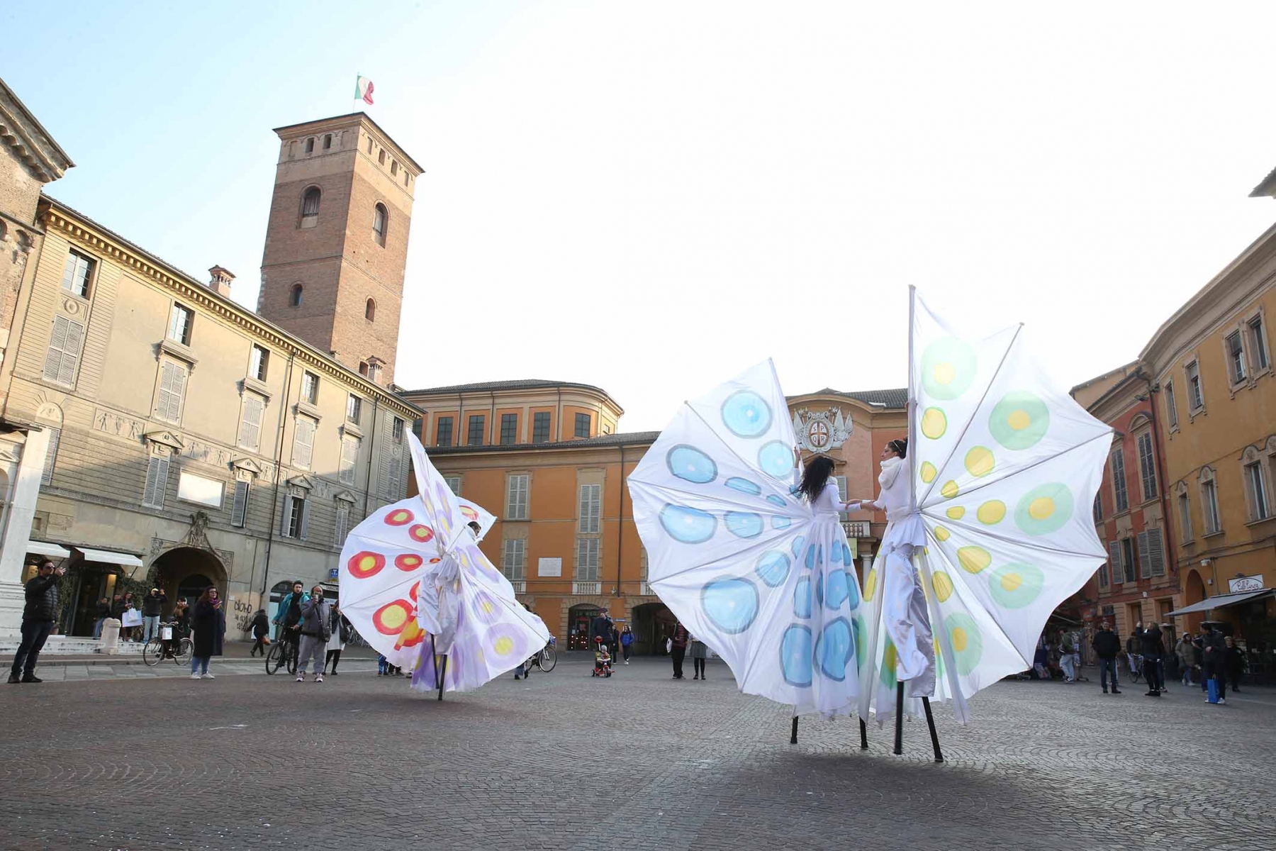 21 febbraio 2023Nel pomeriggio piazza Prampolini e piazza Martiri sono state invase dai tanti bambini che prima hanno seguito uno spettacolo di musica e danza con tanto di valzer sui trampoli e farfalle di seta, poi hanno giocato tra loro interpretando i supereroi preferiti