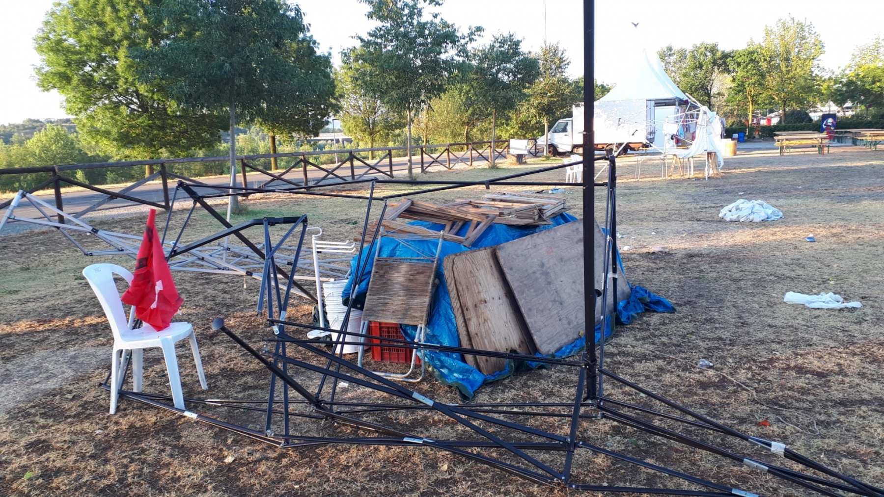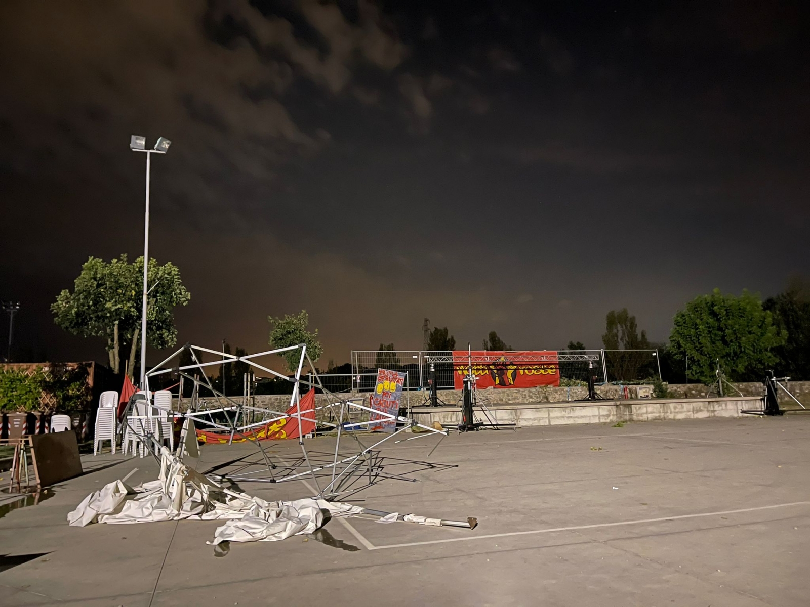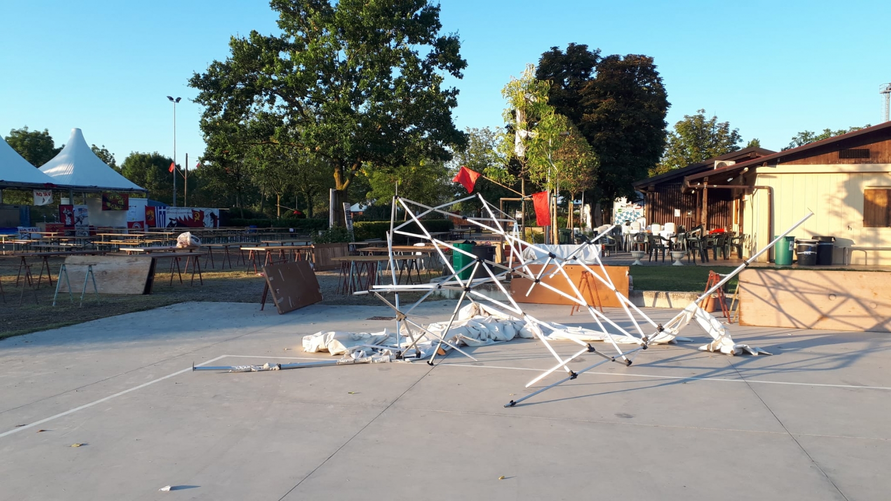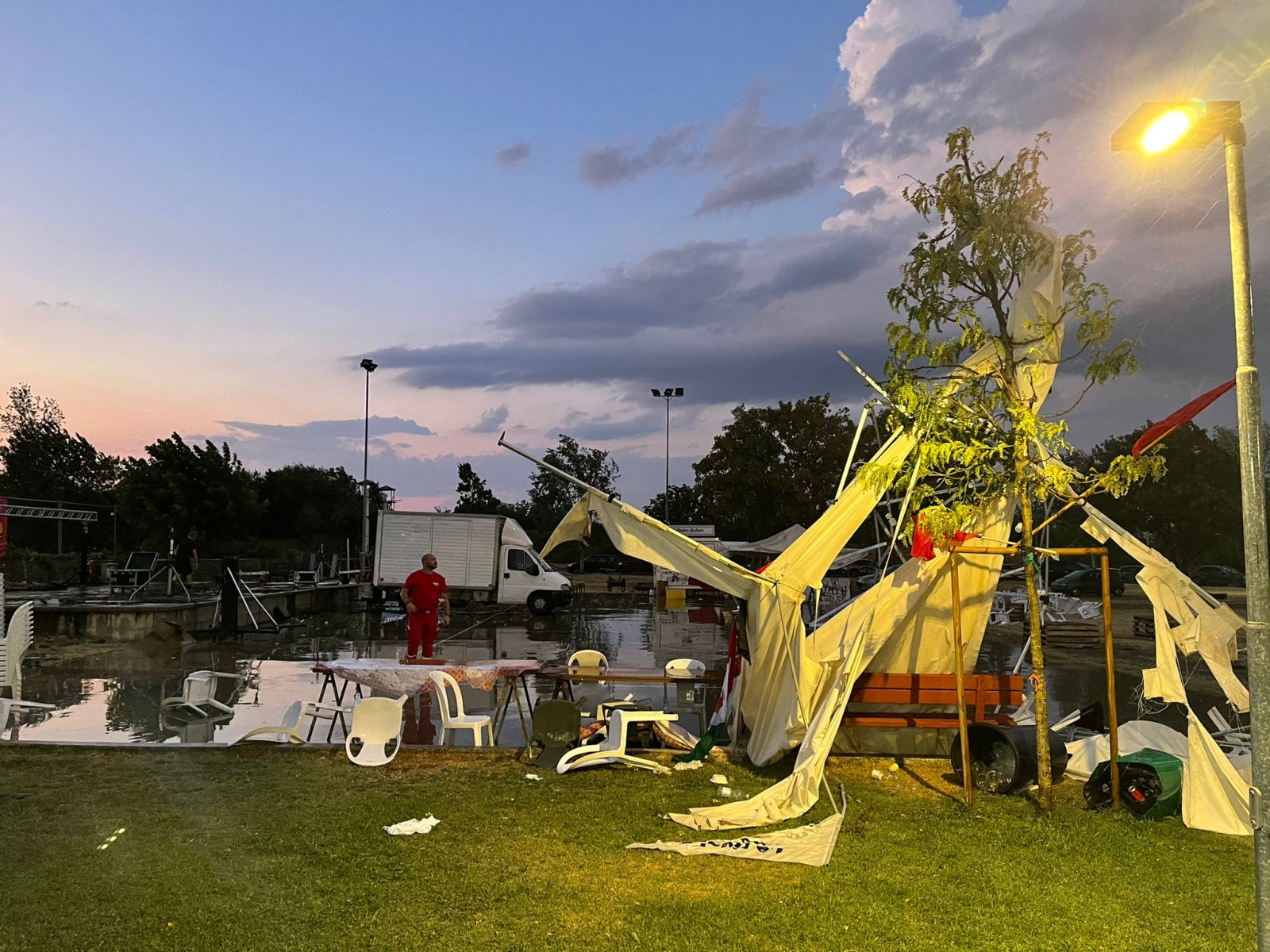 Le immagini coi danni subiti per effetto del maltempo sono state pubblicate dagli organizzatori che su Facebook sottolineano come si siano già messi all’opera per farsi trovare pronti a riaprire la festa venerdì sera. “Noi ci rialziamo e ripartiamo – si legge -, l’area sta riprendendo forma”.