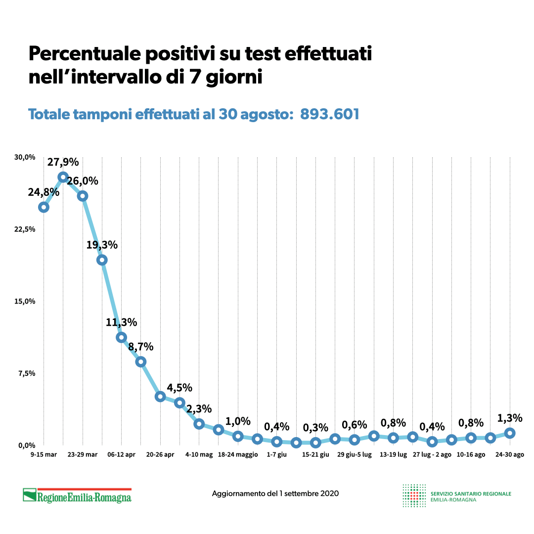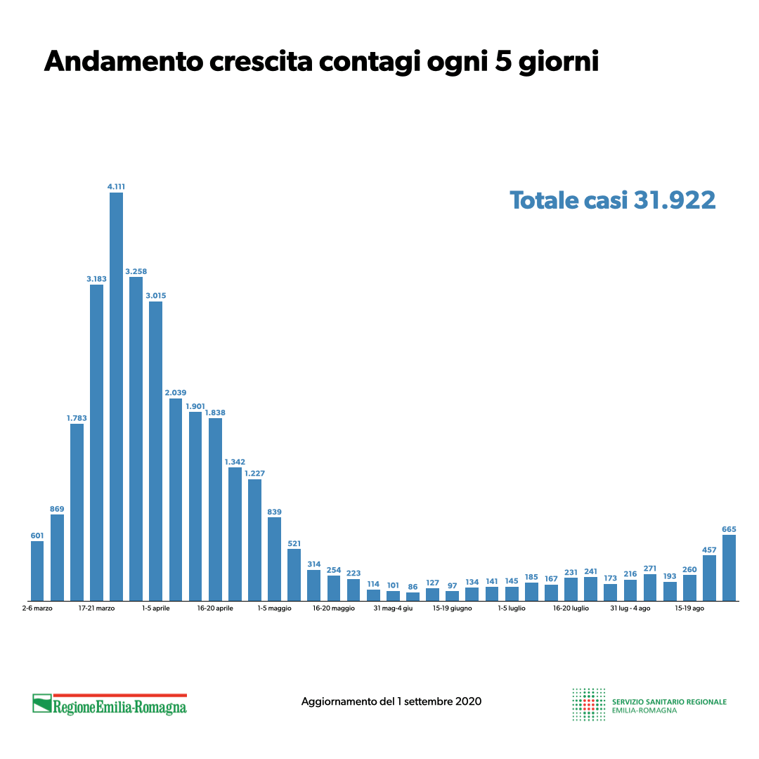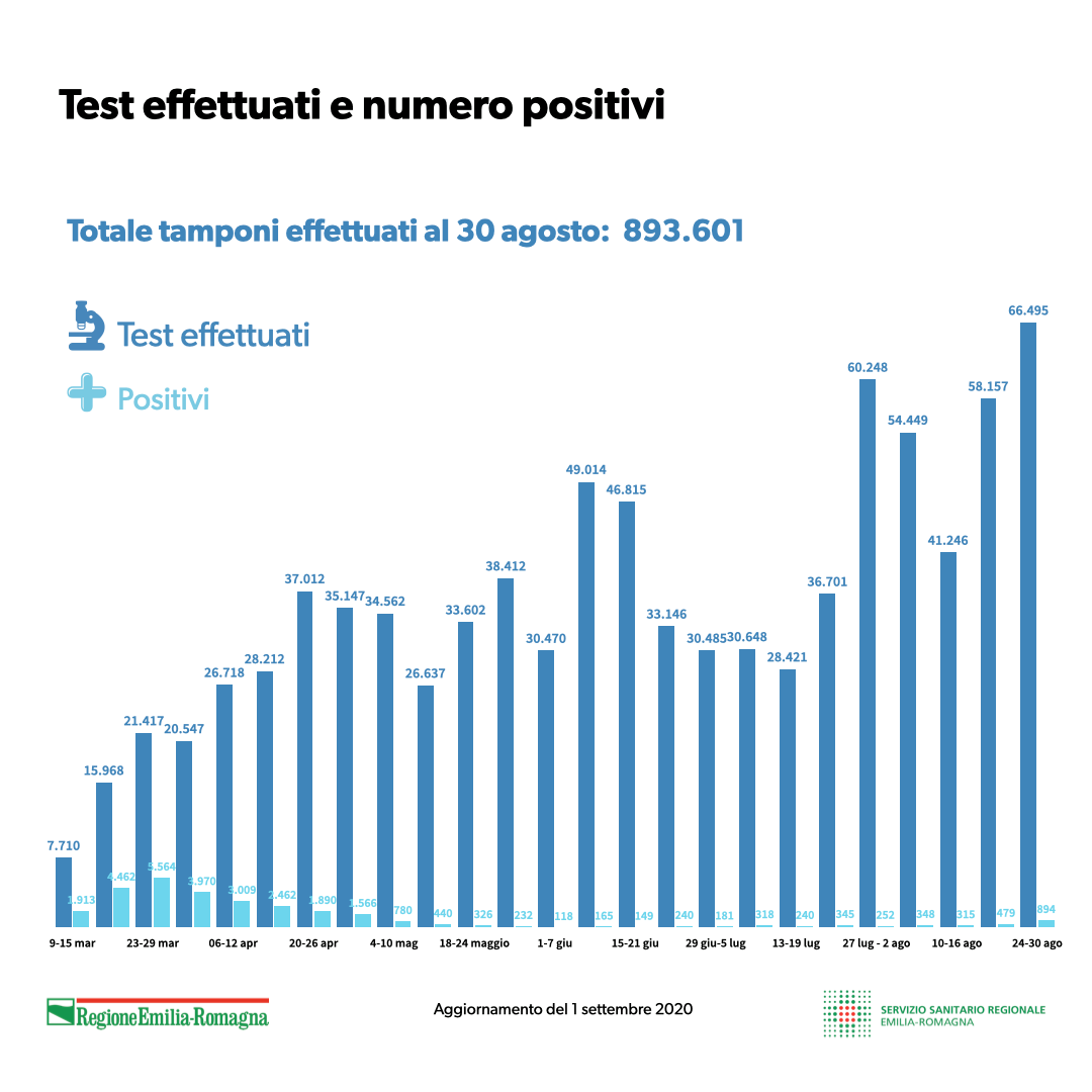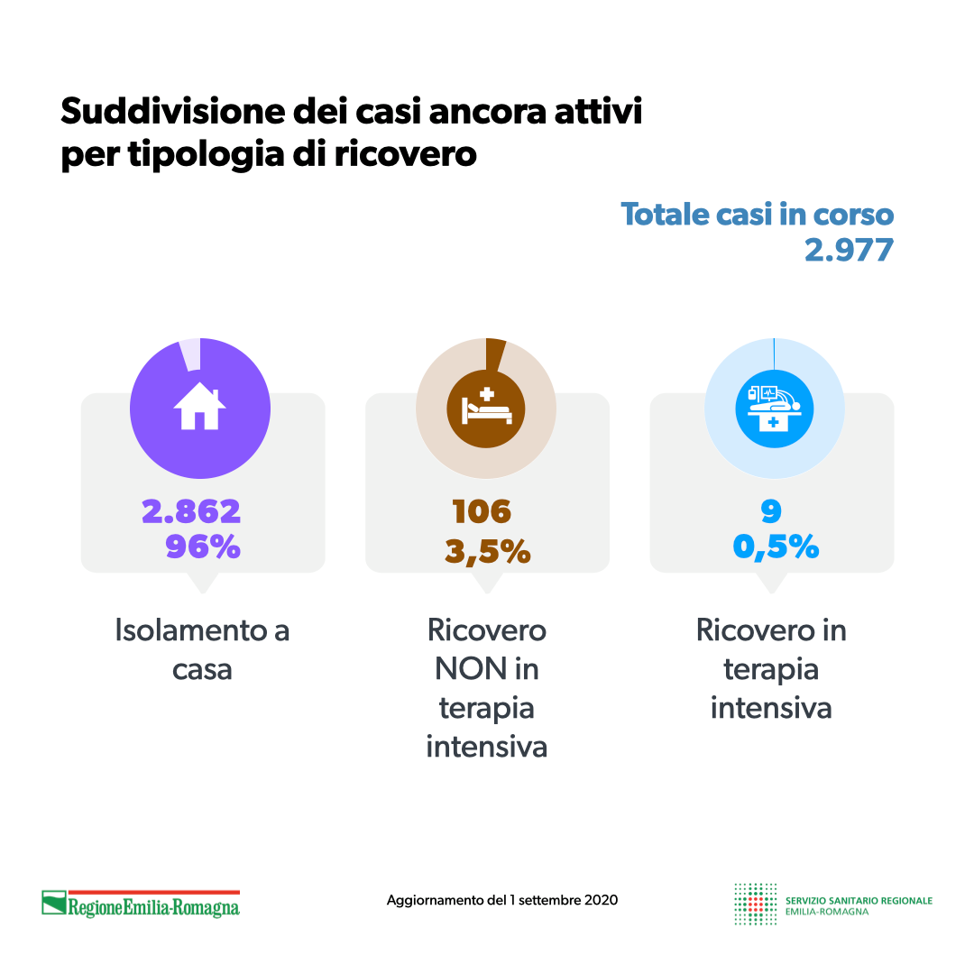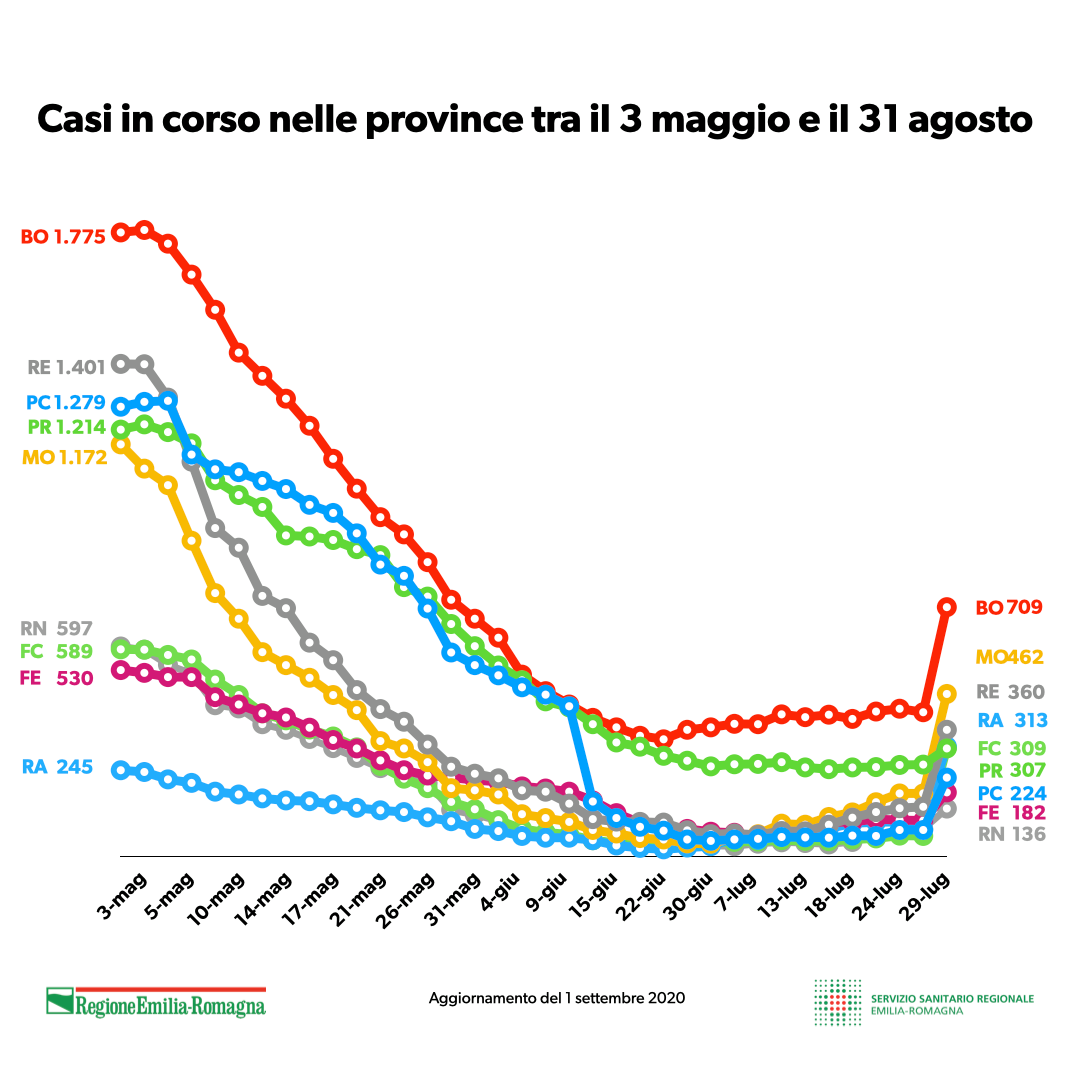 Covid19, la situazione in Emilia Romagna aggiornata all’1 settembre. INFOGRAFICA