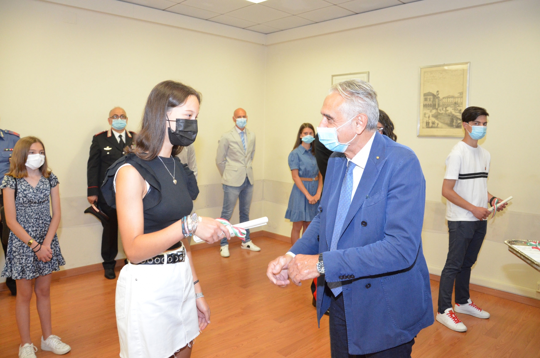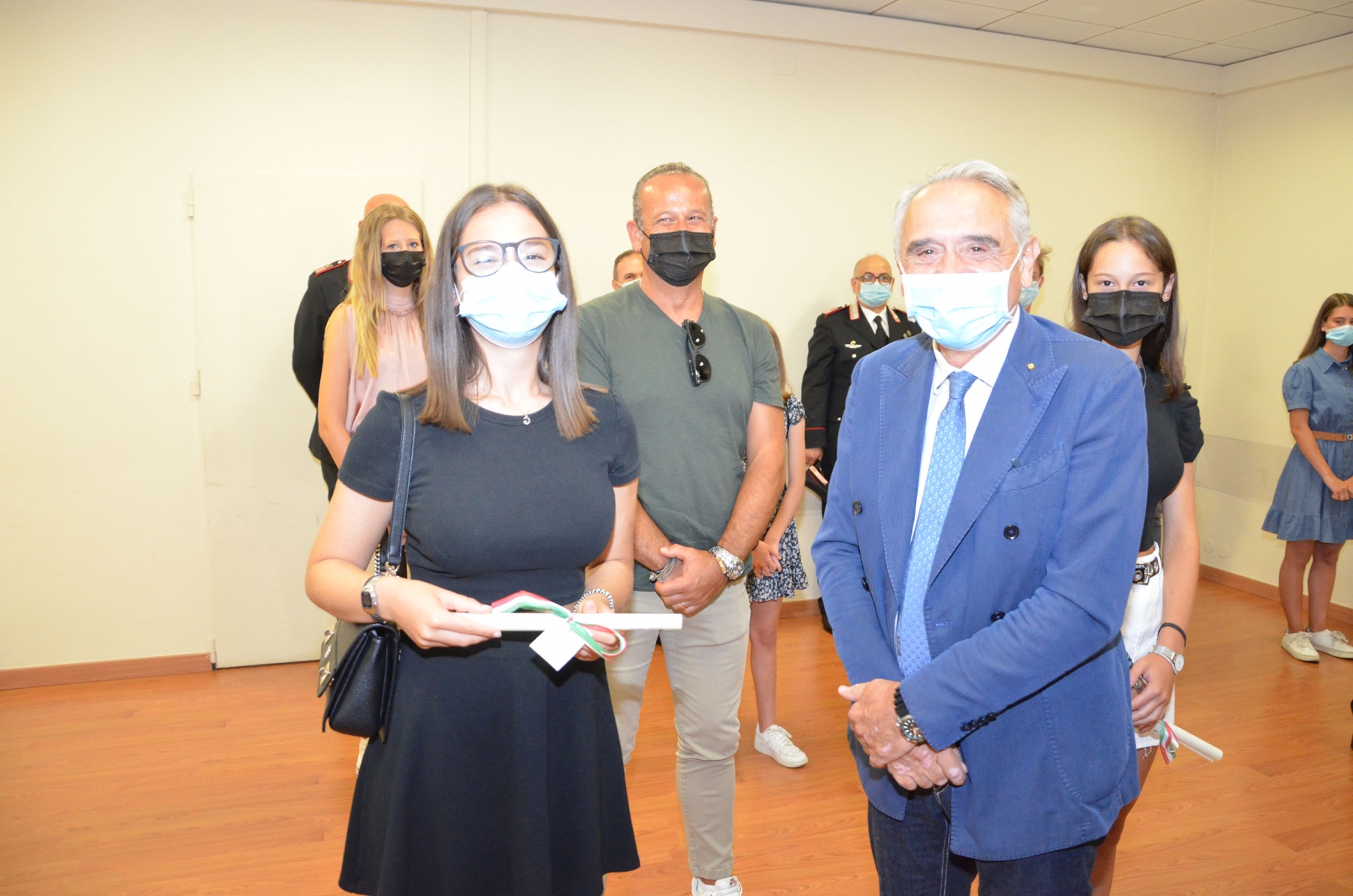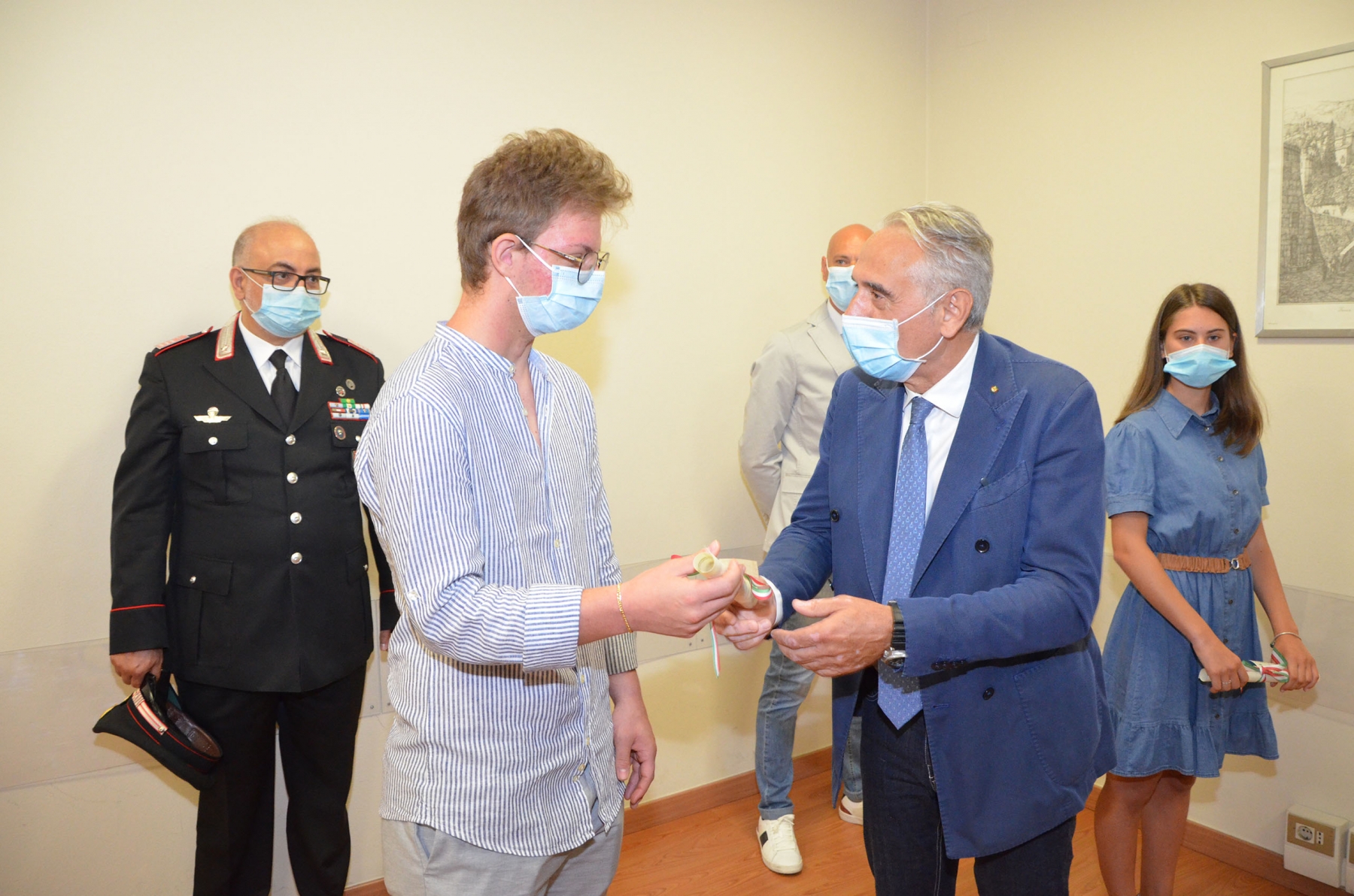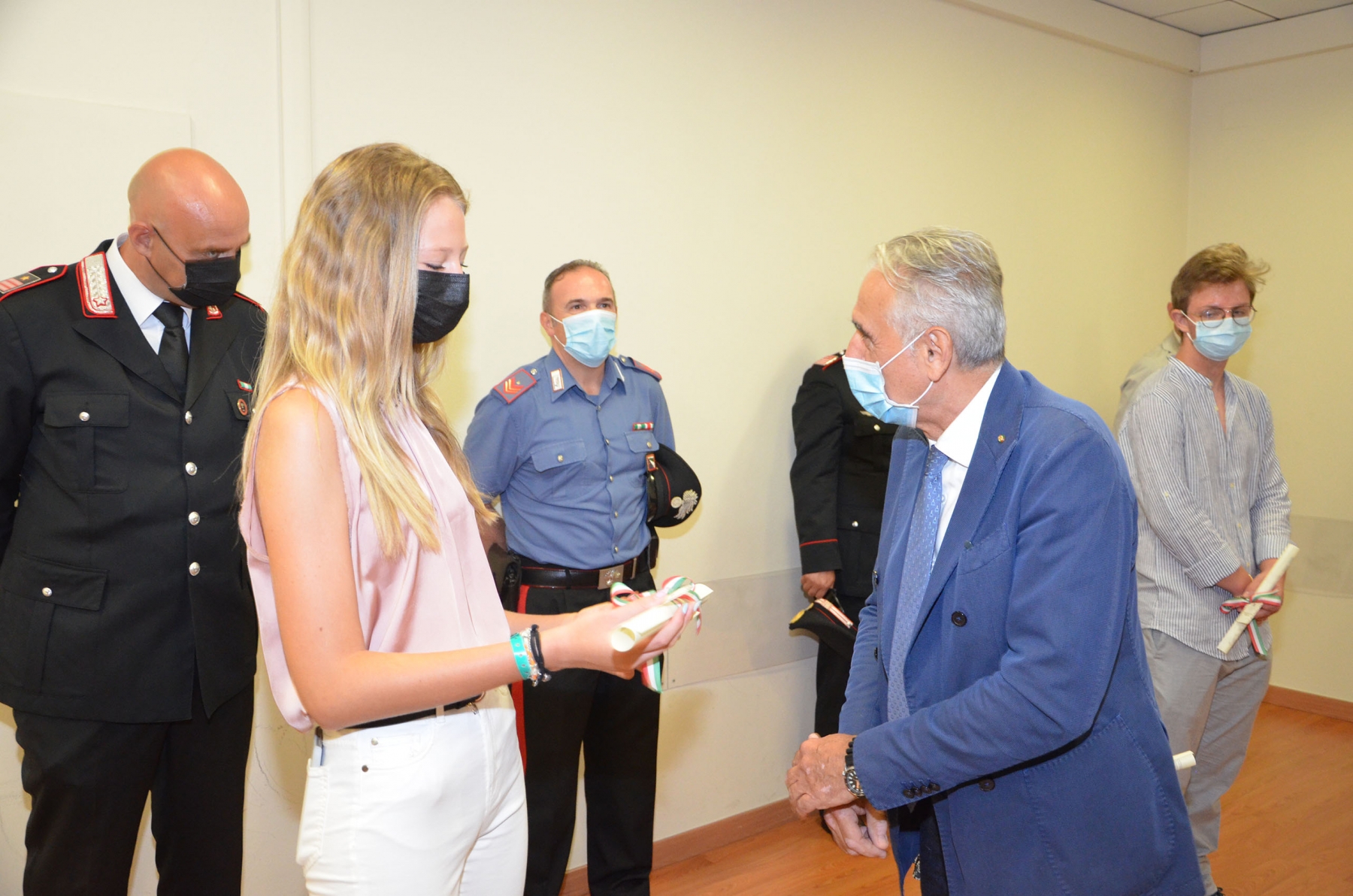 La cerimonia odierna si inquadra in quella per la celebrazione del 207° anniversario dell’Arma svoltosi in forma ridotta, a causa delle restrizioni imposte dal Covid, lo scorso 5 giugno. Al comando provinciale di corso Cairoli, alla presenza del presidente della Fondazione Monadori, Romano Sassatelli, del comandante provinciale Cristiano Desideri e degli altri ufficiali della sede, sono stati premiati per le scuole superiori: Lorenzo Sciamanna, Luigi Negri, Erika Cerullo, Federico Saviano, Martina Antonietta Iozzo, Daniele Loris Merolla, Andrea Lugini e Nicolò Bevilacqua; per le scuole medie inferiori le borse di studio sono andate ad Arianna Gobbini, Giulio Pallante, Giorgia Varrata, Emma Musso, Giada Cerullo, Annalisa Regni, Ilenia Negri, Matteo Varratta e Thomas Mazzella.