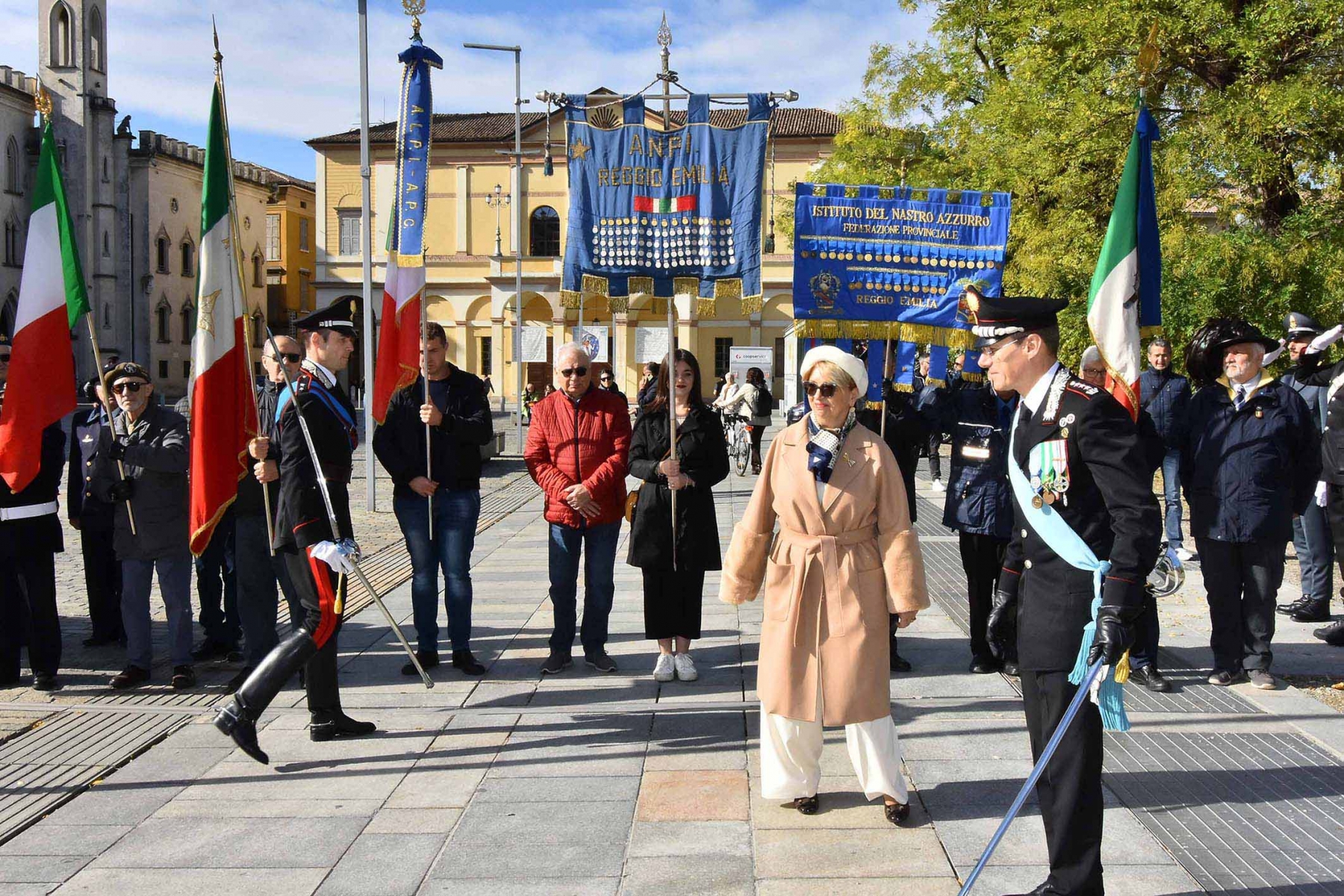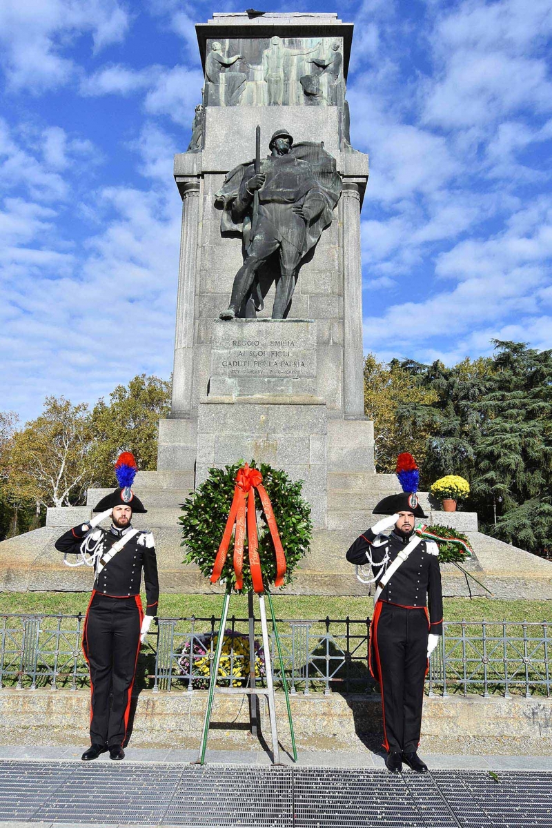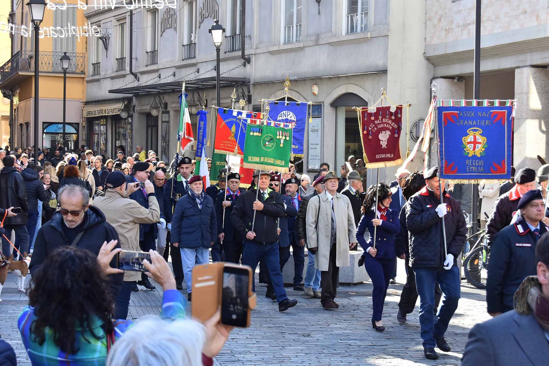 REGGIO EMILIA – Anche nella nostra città si è celebrata la giornata dell’Unità nazionale e delle forze armate. Dopo la messa in suffragio ai caduti, tenuta in duomo dall’arcivescovo Giacomo Morandi, il corteo, seguito con curiosità da tanta gente presente in mattinata in centro, si è recato prima in piazza Martiri del 7 Luglio per la deposizione della corona al monumento dei caduti della Resistenza e, poi, si spostato in piazza della Vittoria per rendere omaggio al monumento ai caduti della Grande guerra.