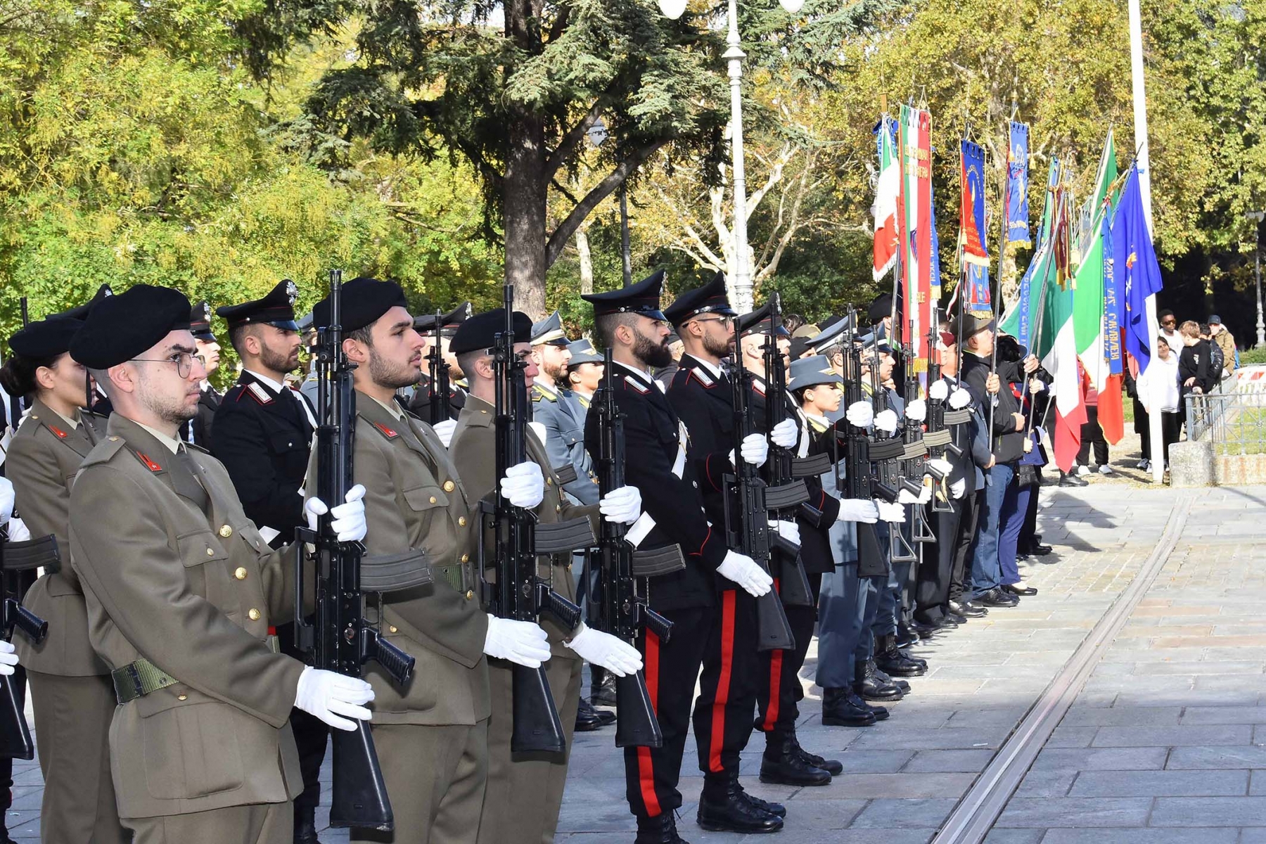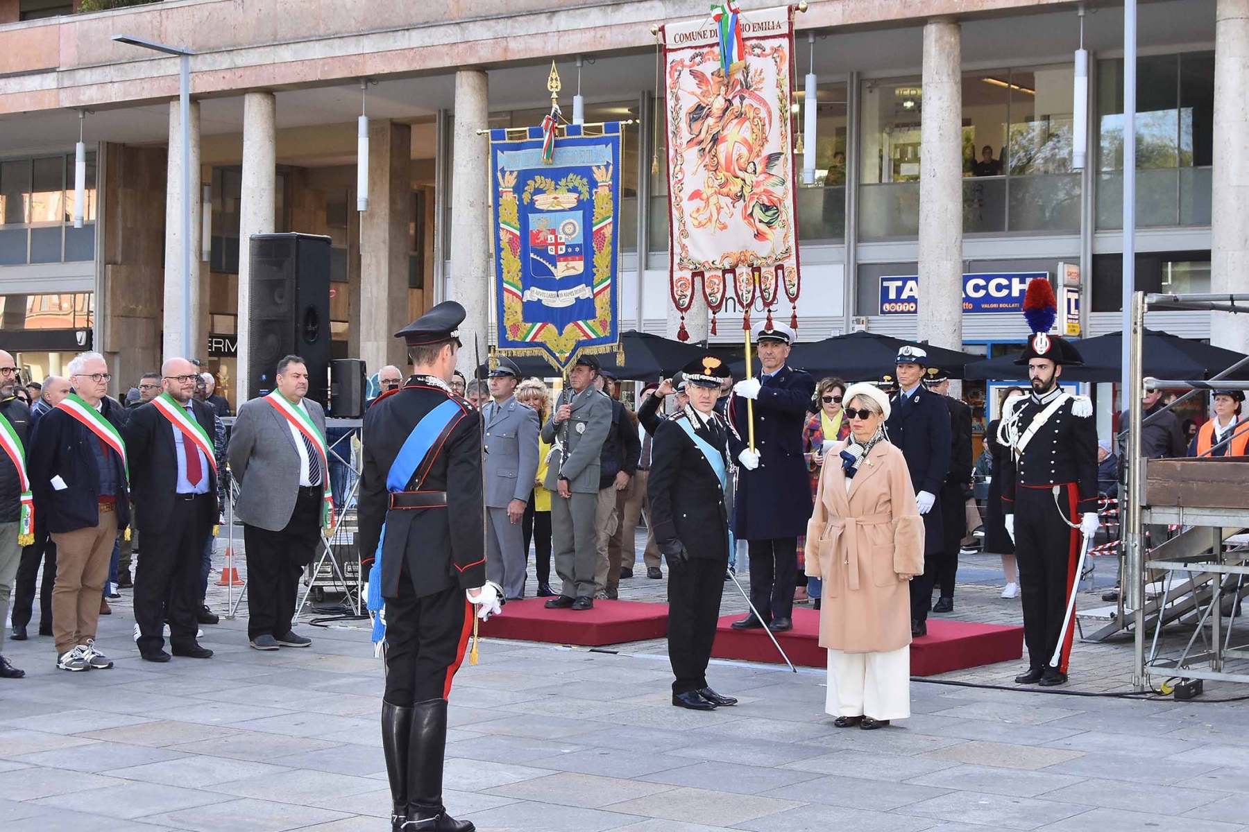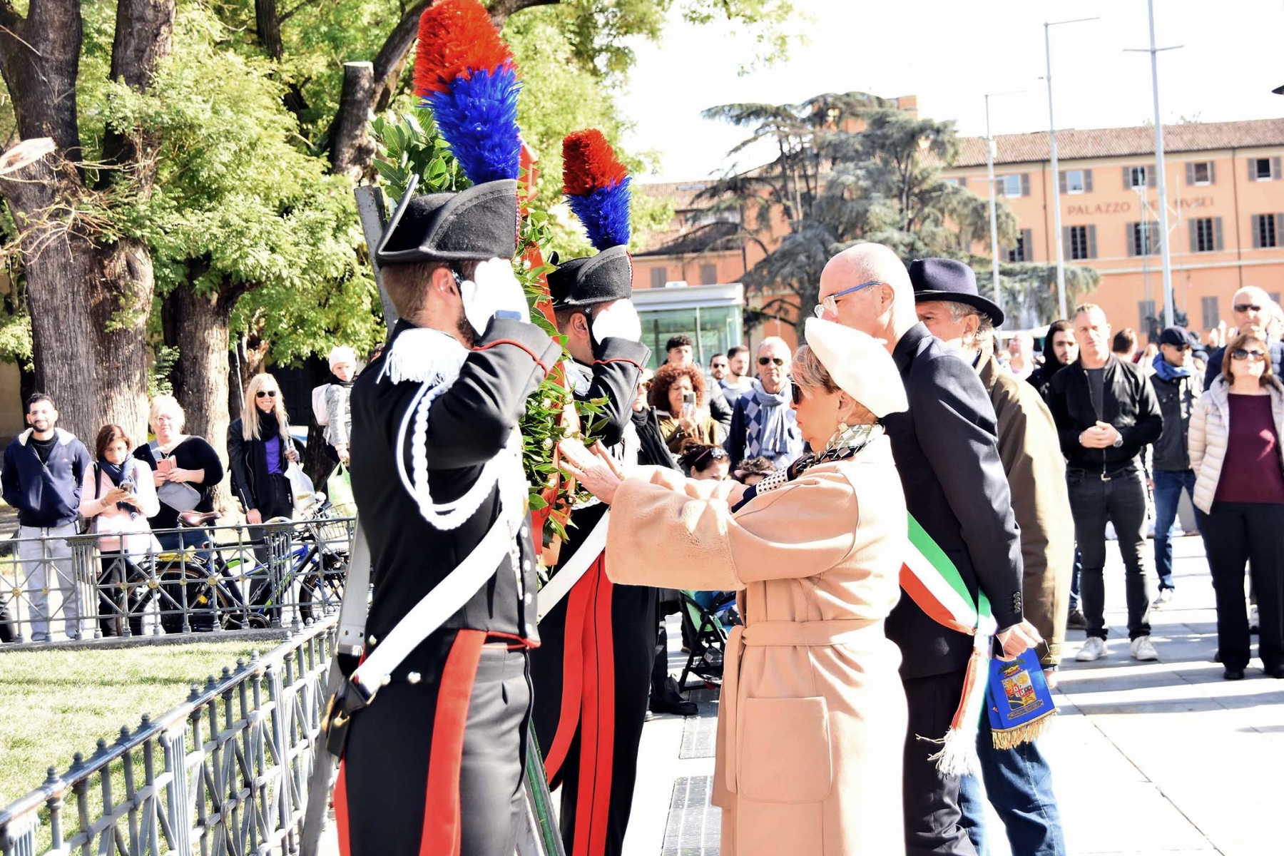 “Tutti noi siamo chiamati a ricordare, non soltanto l’importanza di certi valori, ma anche l’impegno di tante persone che ogni giorno si impegnano per far sì che il nostro Paese continui a vivere nella pace, nella giustizia e nella serenità. E’ un appuntamento che assume ancora più valore nel difficile contesto attuale che non avremmo mai voluto vivere”, ha detto il prefetto Maria Rita Cocciufa. “Questo è un momento di memoria nella storia di questo Paese, ma al tempo stesso di riflessione sull’attualità. Tutte le democrazie del mondo, in tempo di pace, si rapportano con il ruolo dello loro forze armate come costruttori di sicurezza e pace in tanti contesti nazionali e anche internazionali, le ha fatto eco il sindaco Luca Vecchi.