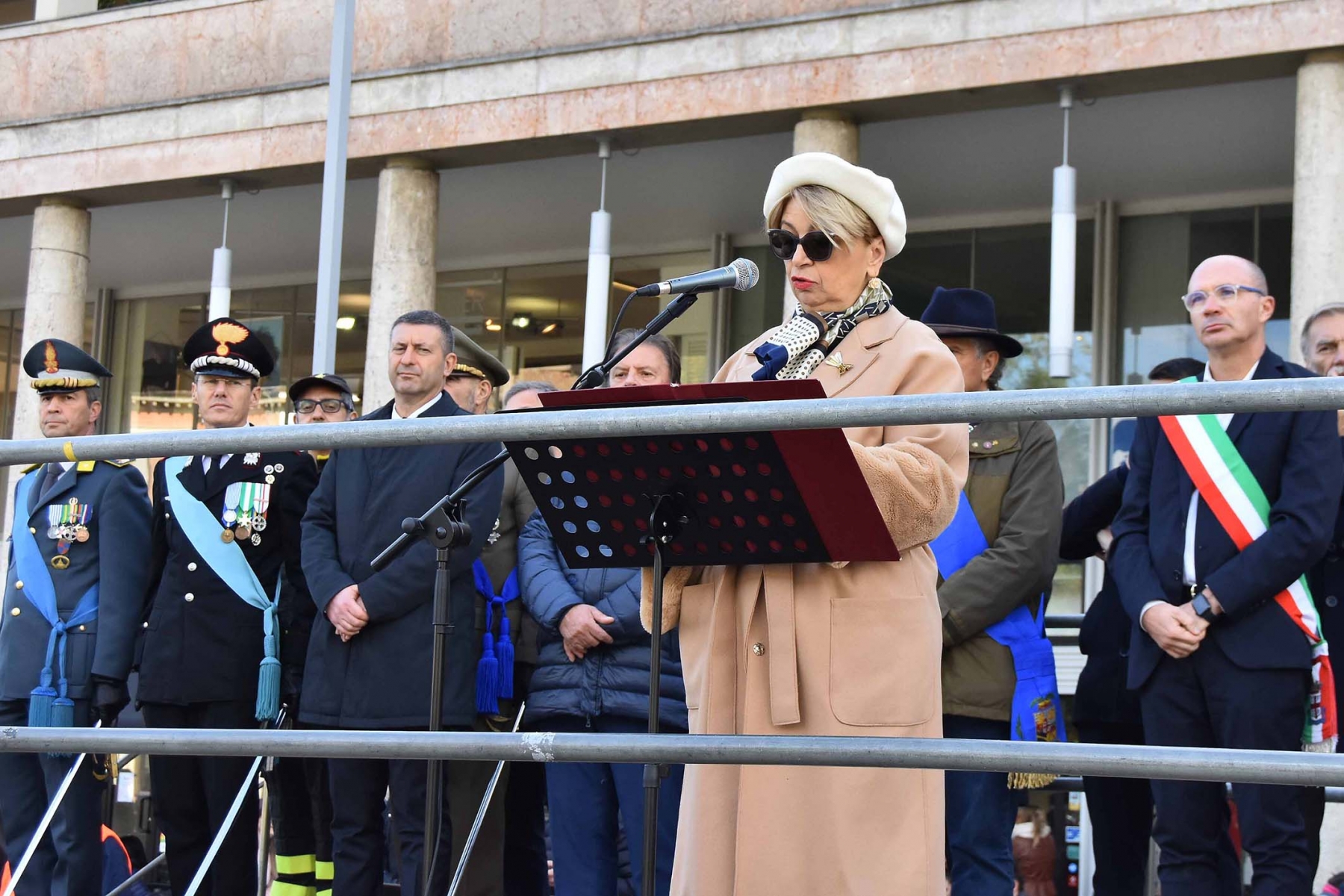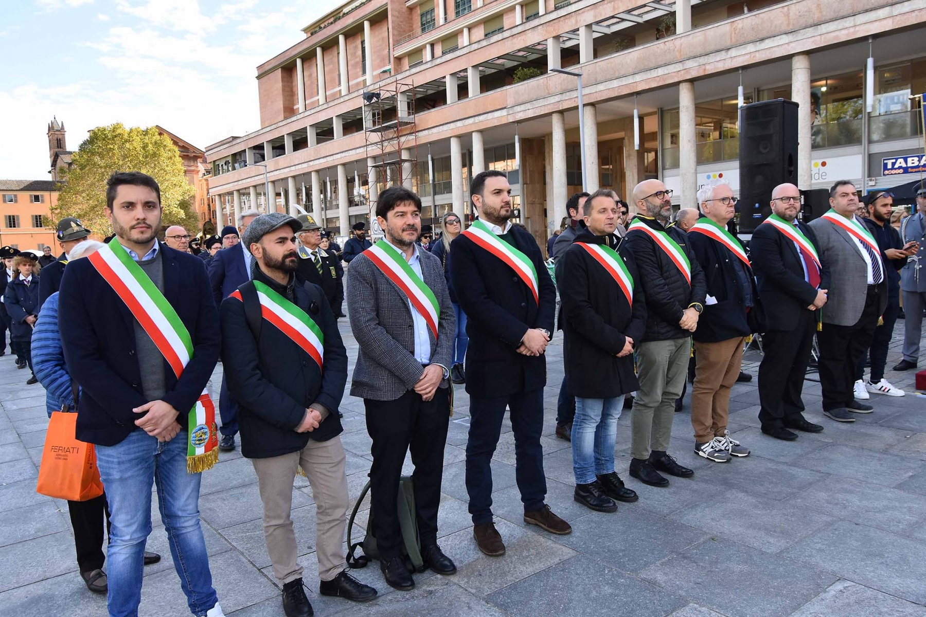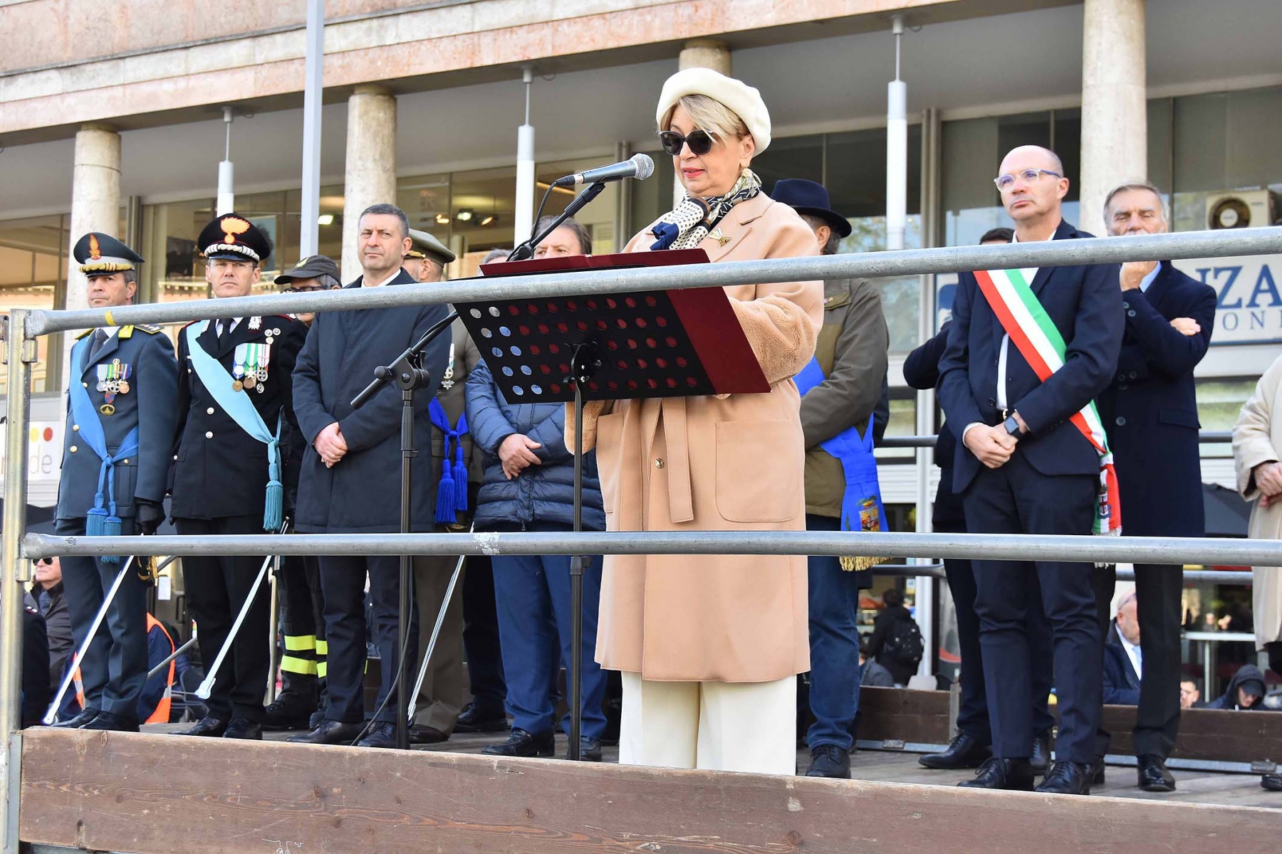“Tutti noi siamo chiamati a ricordare, non soltanto l’importanza di certi valori, ma anche l’impegno di tante persone che ogni giorno si impegnano per far sì che il nostro Paese continui a vivere nella pace, nella giustizia e nella serenità. E’ un appuntamento che assume ancora più valore nel difficile contesto attuale che non avremmo mai voluto vivere”, ha detto il prefetto Maria Rita Cocciufa. “Questo è un momento di memoria nella storia di questo Paese, ma al tempo stesso di riflessione sull’attualità. Tutte le democrazie del mondo, in tempo di pace, si rapportano con il ruolo dello loro forze armate come costruttori di sicurezza e pace in tanti contesti nazionali e anche internazionali, le ha fatto eco il sindaco Luca Vecchi.