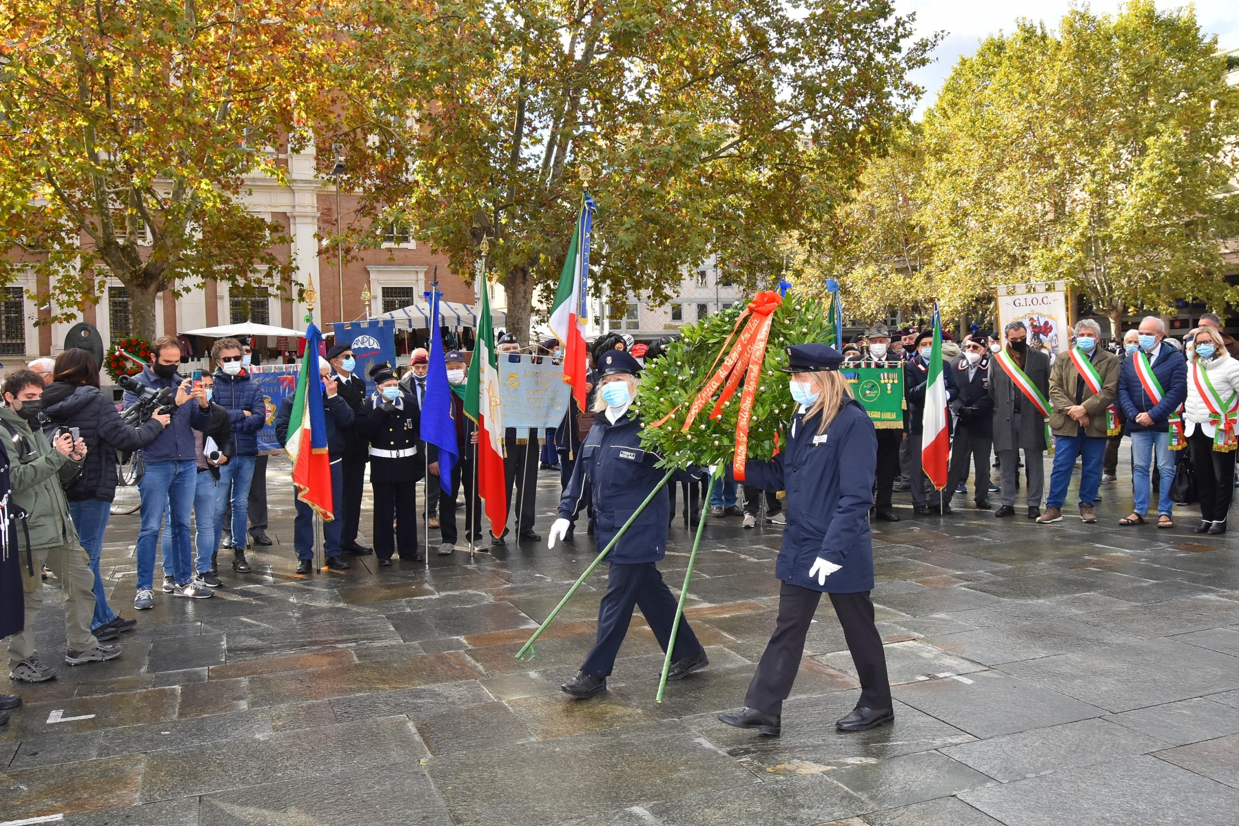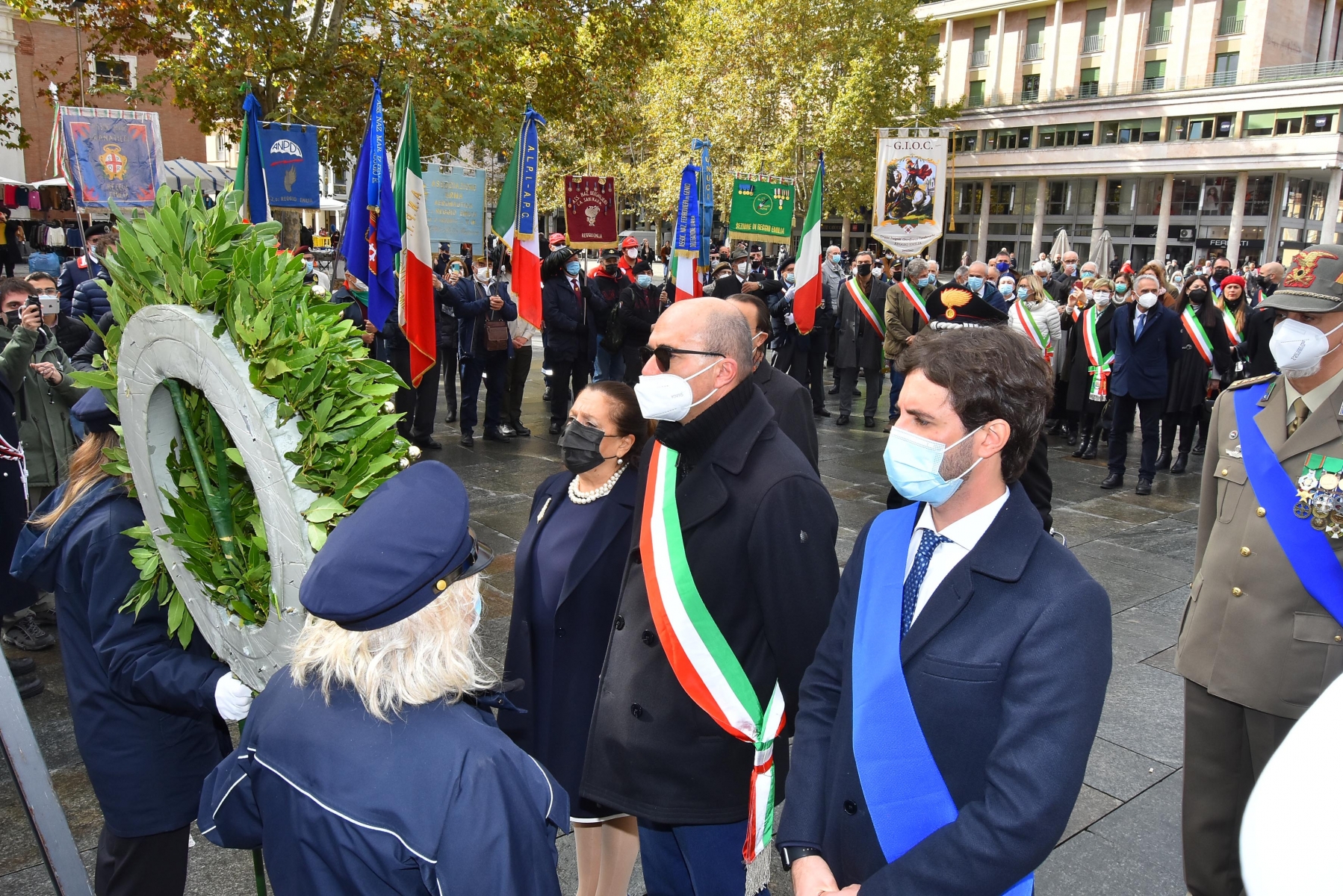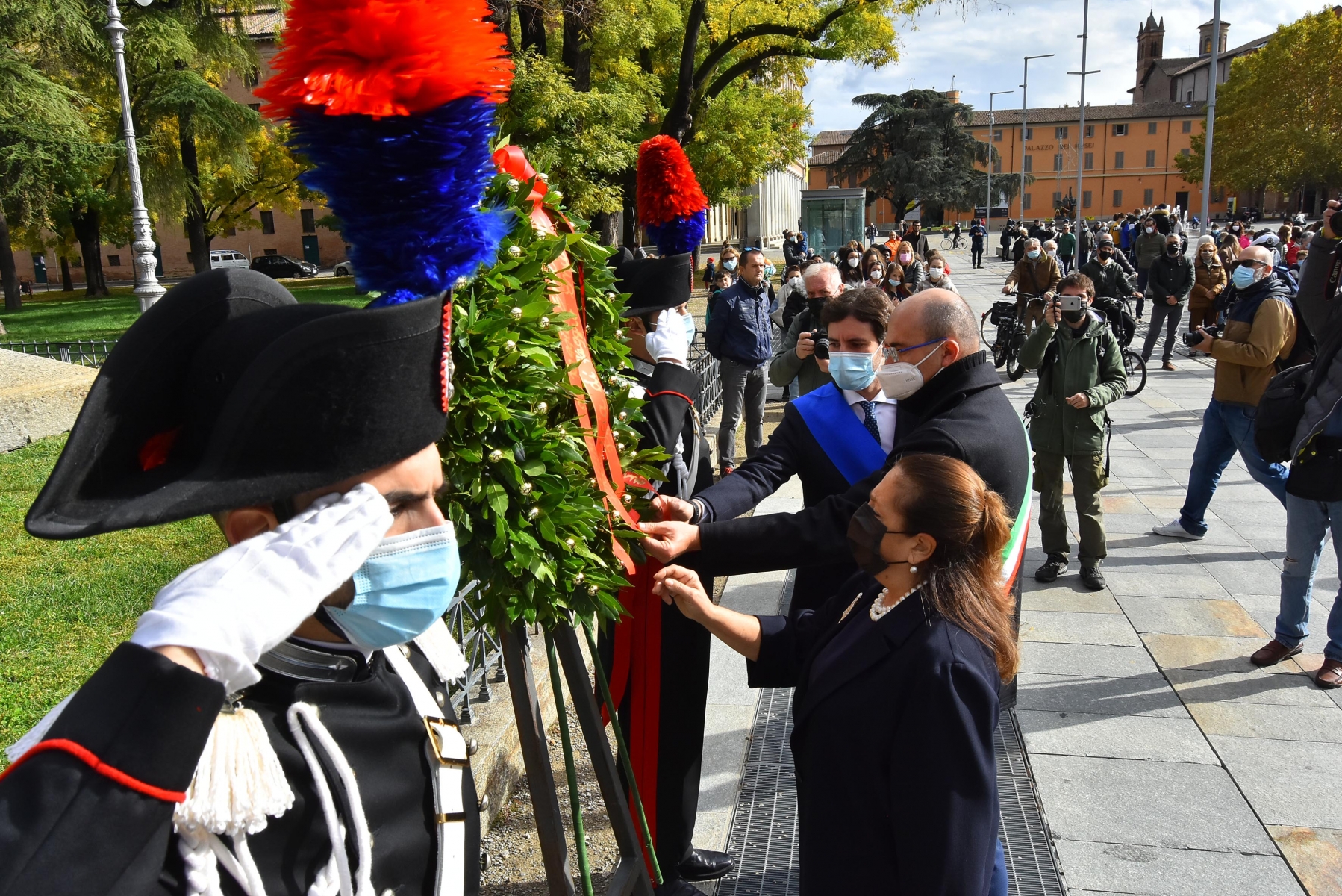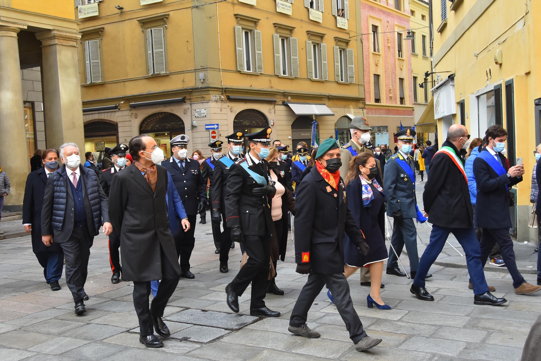 Le note dell’inno nazionale risuonano in piazza della Vittoria. L’alzabandiera davanti al monumento ai Caduti è soltanto uno dei diversi momenti celebrativi dedicati al 4 novembre, giornata dell’Unità Nazionale e delle Forze Armate. La ricorrenza coincide quest’anno col centenario della tumulazione del Milite Ignoto posto al centro dell’Altare della Patria a Roma. “Un militare senza nome che ci consegna la consapevolezza del percorso faticoso compiuto dal Paese per ritrovare la sua unità tra tante diversità”, le parole del sindaco Luca Vecchi in Sala del Tricolore dove è stata conferita la cittadinanza onoraria al soldato simbolo perito al fronte durante la Grande guerra.