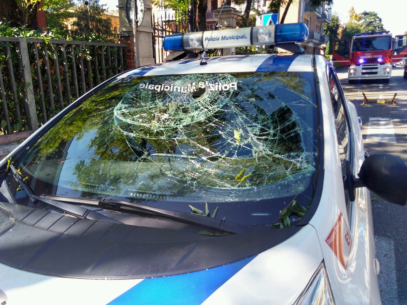 E’ successo intorno alle 14 in viale Timavo. Il veicolo è stato costretto a fermarsi, con il parabrezza in frantumi. Guarda le immagini