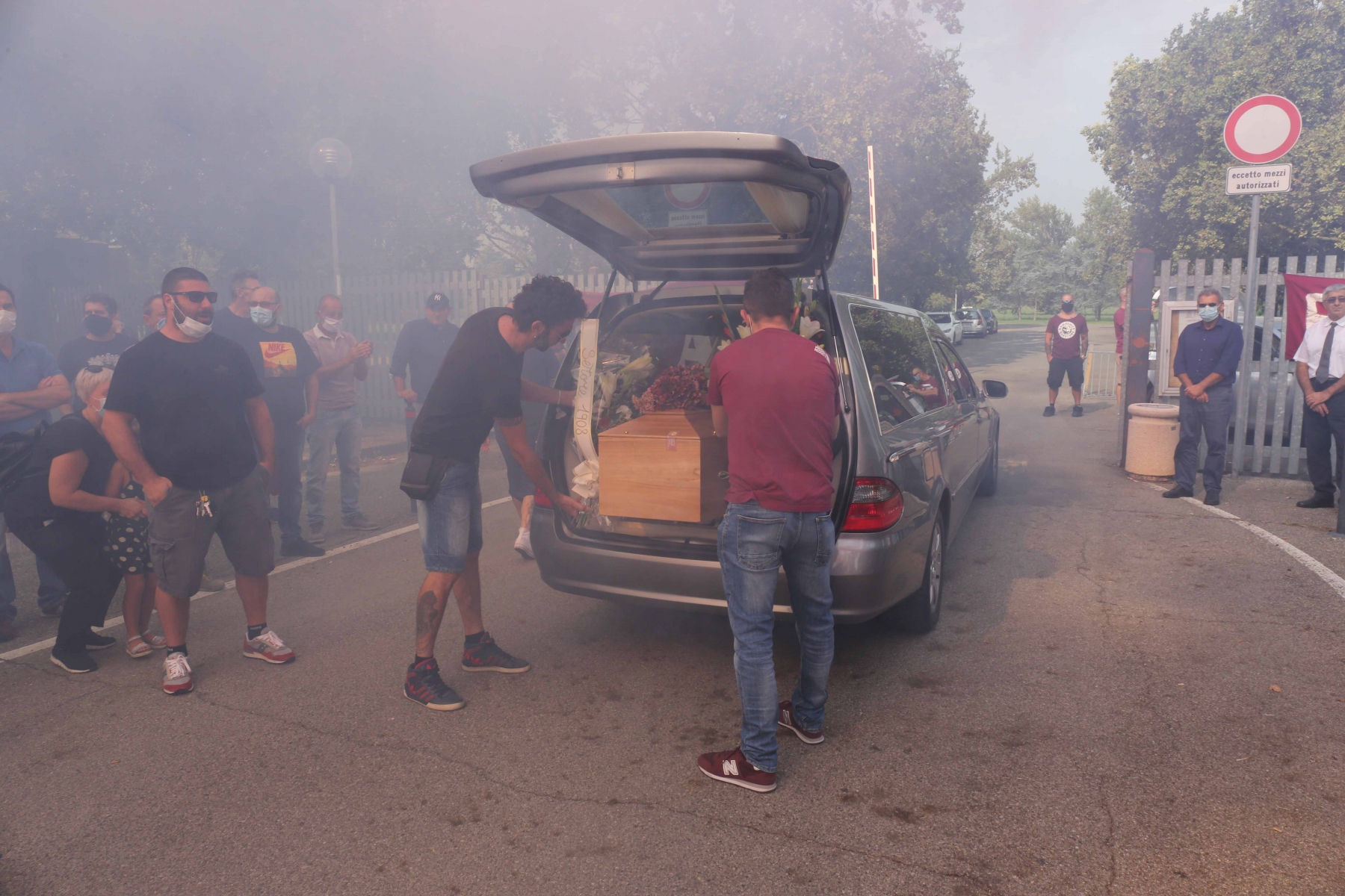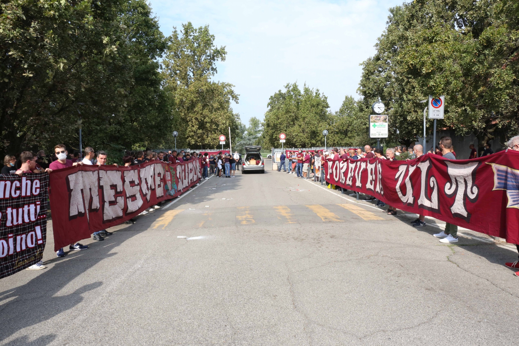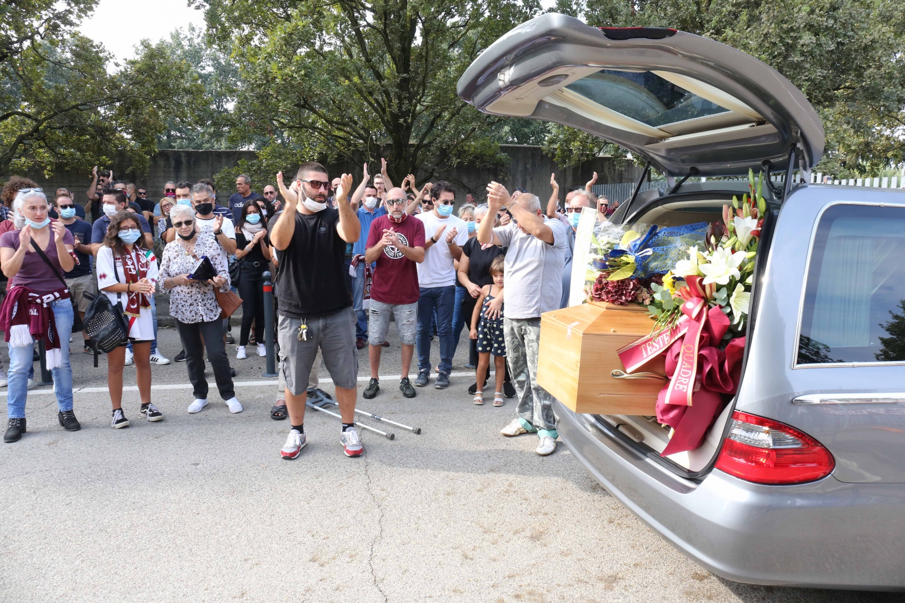 REGGIO EMILIA – Si sono tenute stamane le esequie di Alessandro Iotti, storico tifoso della Reggiana morto a soli 45 anni stroncato da un infarto. Il corteo è partito dalla camera mortuaria di Bologna e ha raggiunto il cimitero di Coviolo dopo le 11: ad attendere “Platini” – questo il suo soprannome – tanti ultras granata che gli hanno tributato un ultimo saluto tra fumogeni, cori, applausi e striscioni.