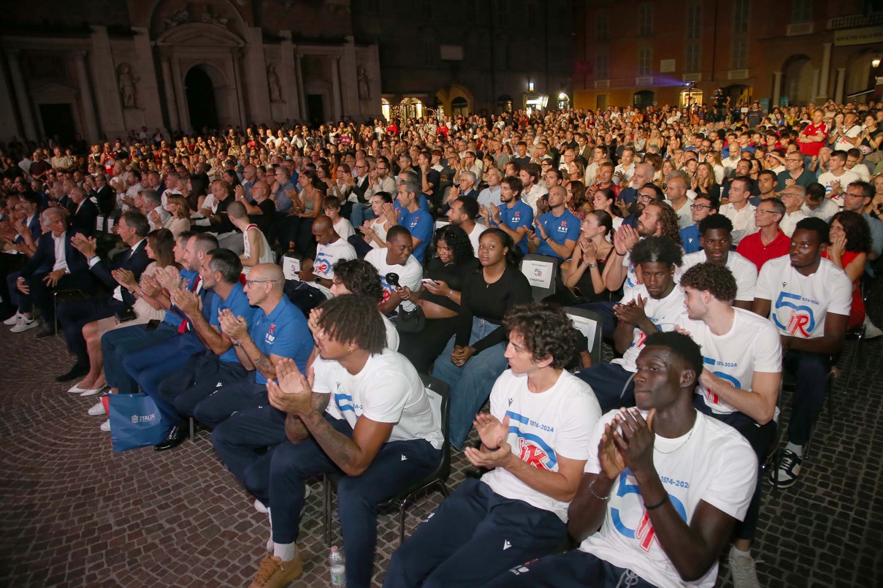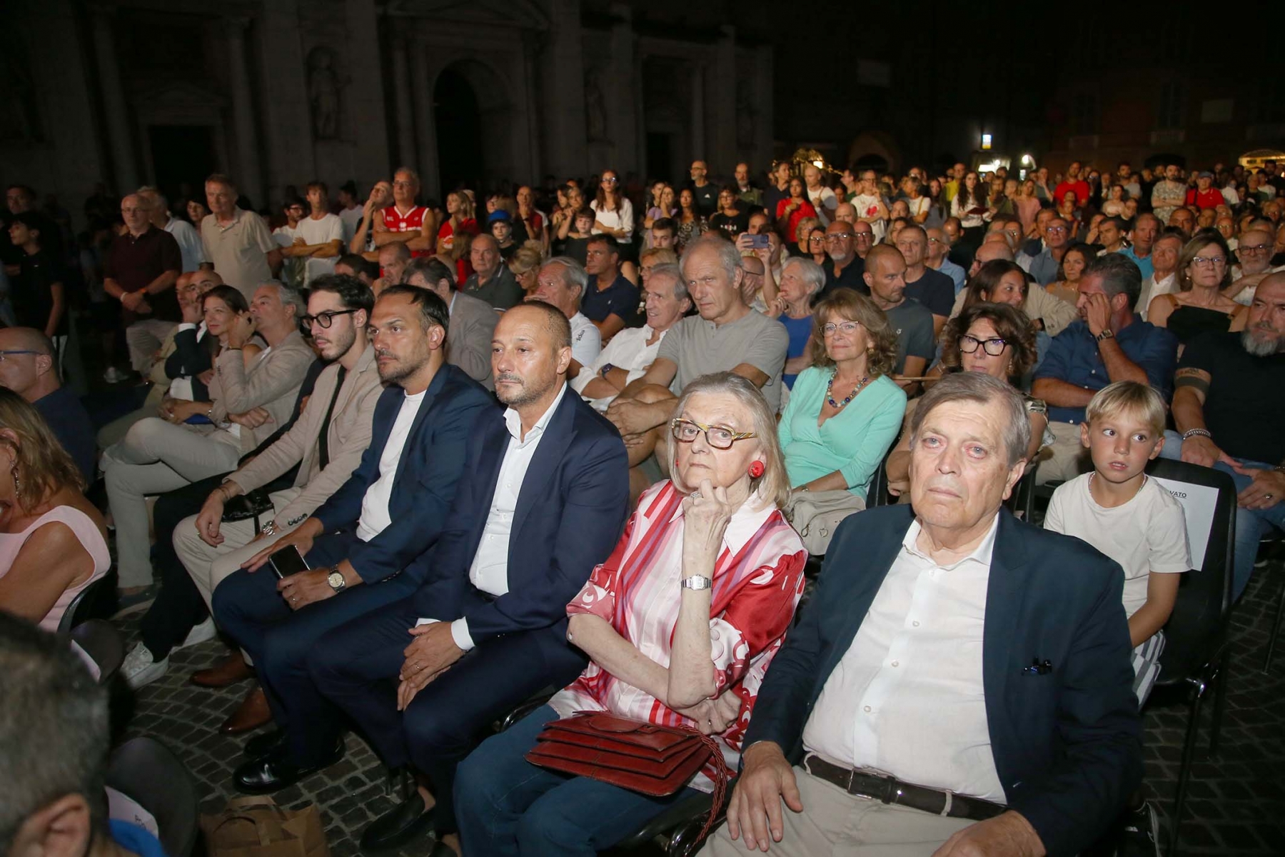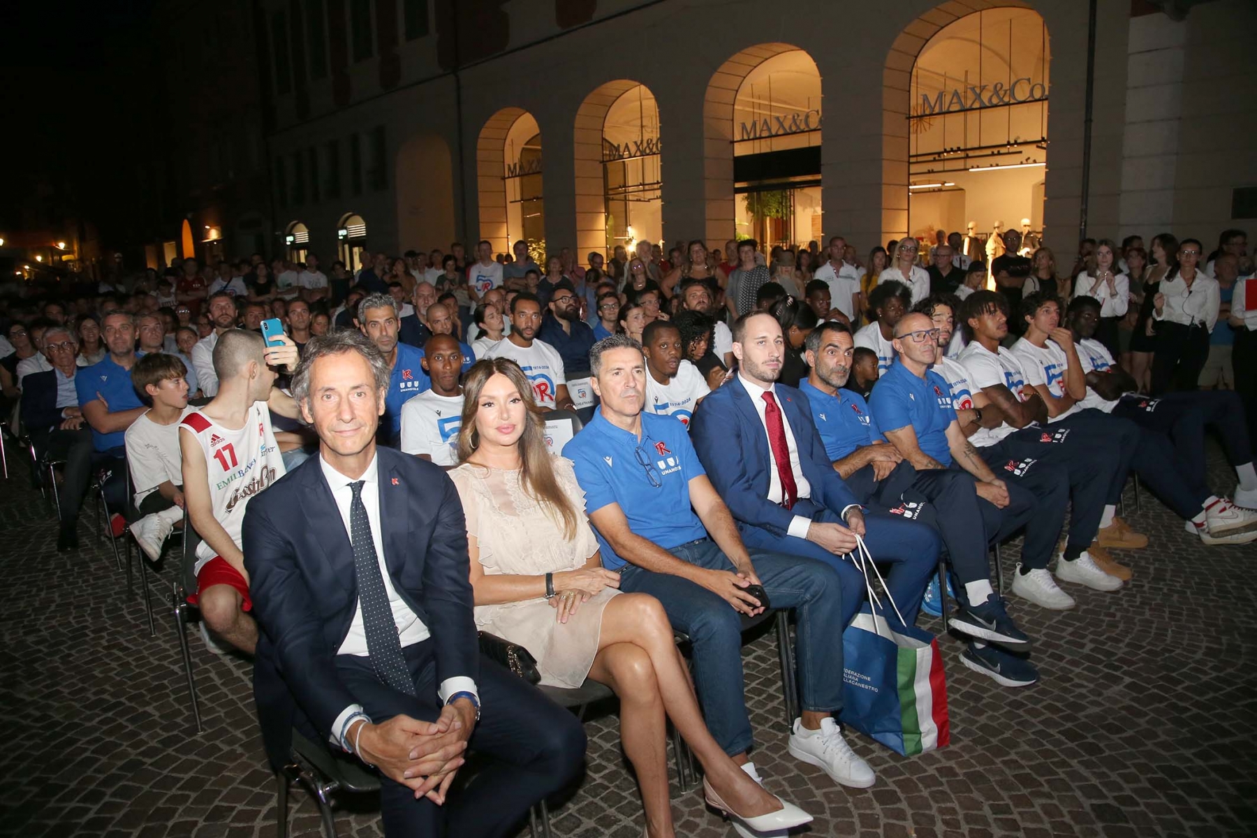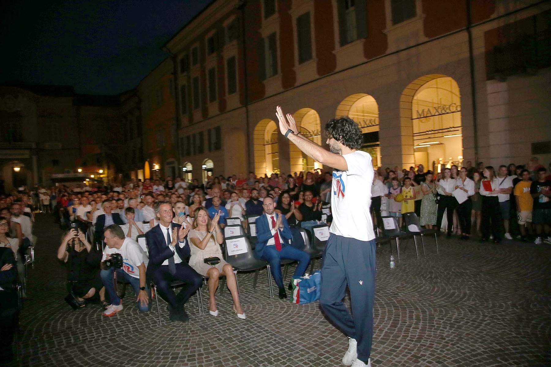 REGGIO EMILIA – Grande festa, ieri sera in piazza Prampolini, per festeggiare il mezzo secolo di vita della Pallacanestro Reggiana. Presenti 3mila persone, che hanno applaudito Vitali e compagni oltre alle vecchie glorie biancorosse e alla dirigenza. Durante la serata, è stato annunciato dal presidente della Fip, Gianni Petrucci, che Reggio Emilia ospiterà, dopo 24 anni, una delle prossime gare di qualificazione agli Europei della nazionale italiana. L’appuntamento sarà per il prossimo 25 novembre al Palabigi per Italia-Islanda.