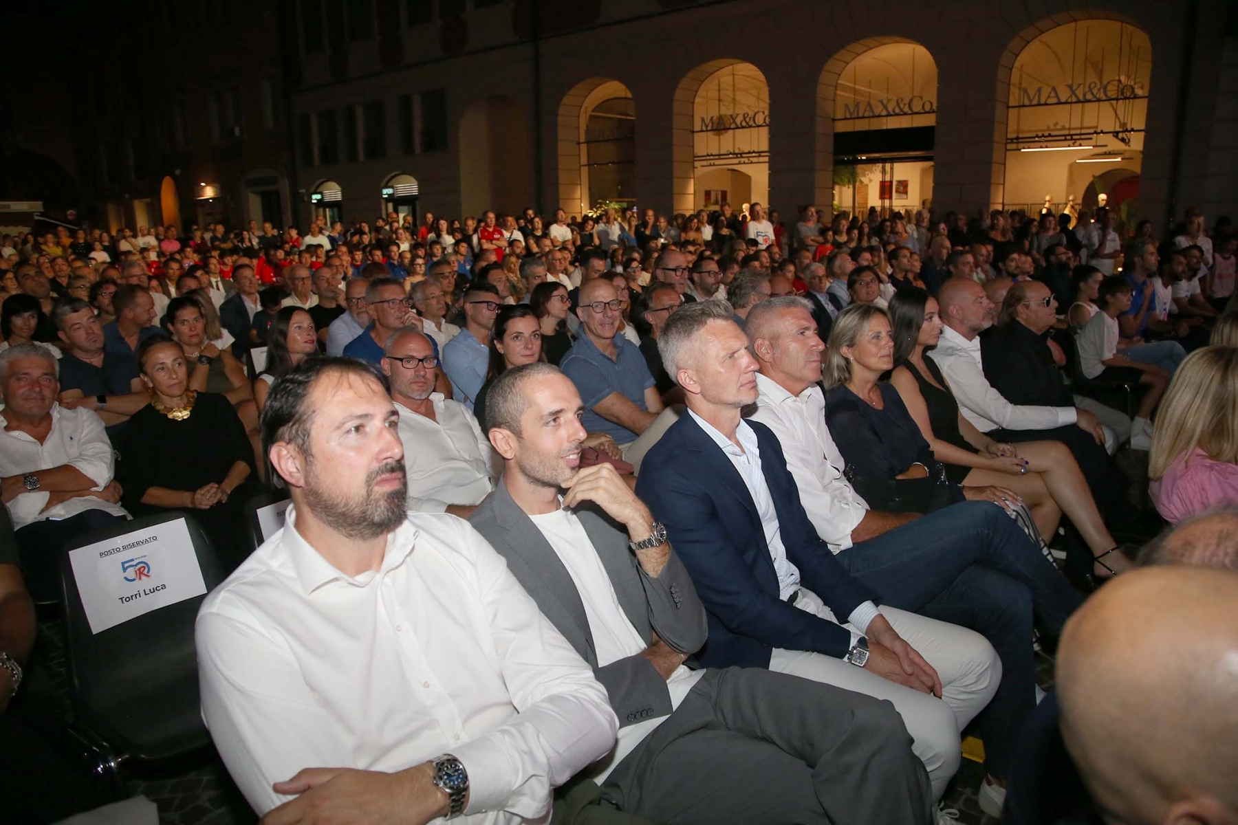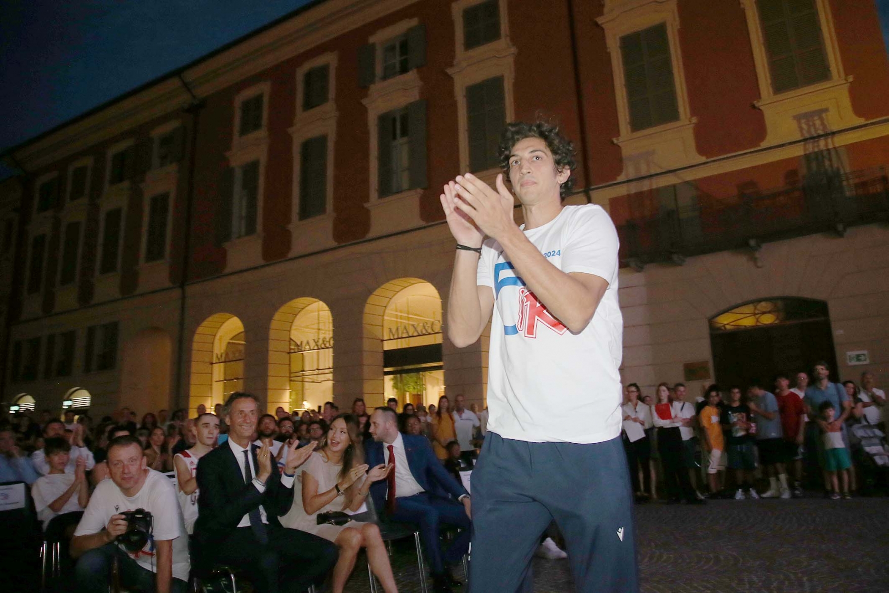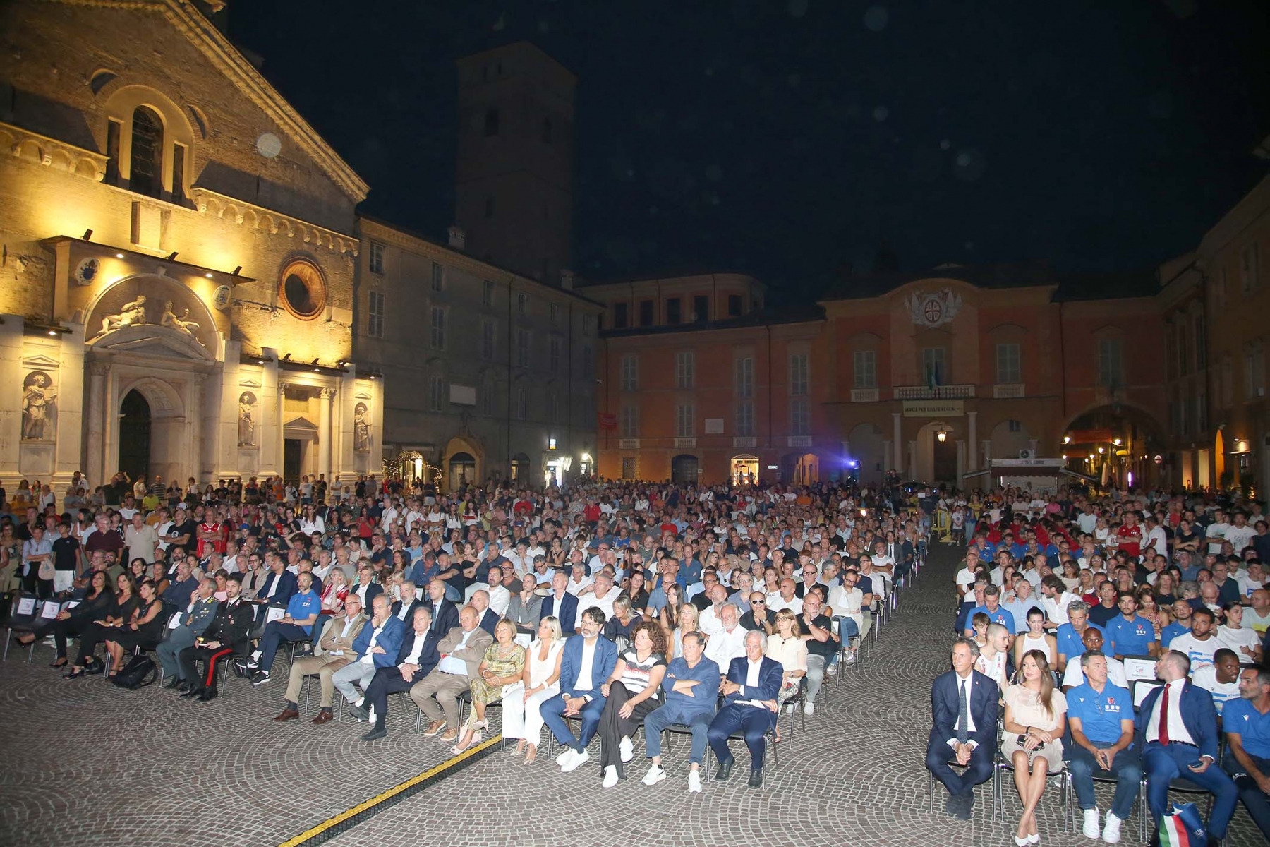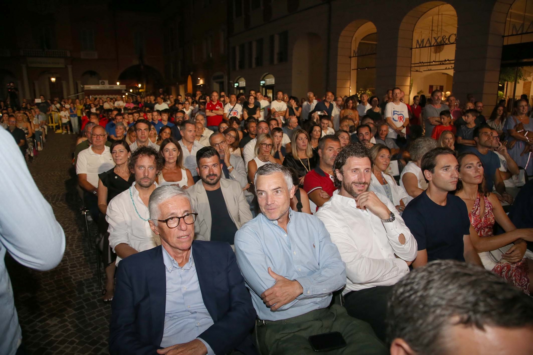 REGGIO EMILIA – Grande festa, ieri sera in piazza Prampolini, per festeggiare il mezzo secolo di vita della Pallacanestro Reggiana. Presenti 3mila persone, che hanno applaudito Vitali e compagni oltre alle vecchie glorie biancorosse e alla dirigenza. Durante la serata, è stato annunciato dal presidente della Fip, Gianni Petrucci, che Reggio Emilia ospiterà, dopo 24 anni, una delle prossime gare di qualificazione agli Europei della nazionale italiana. L’appuntamento sarà per il prossimo 25 novembre al Palabigi per Italia-Islanda.