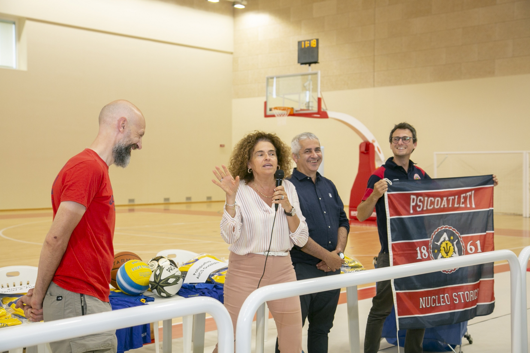 Erano presenti Camilla Verona, presidente dell’Unione Bassa Reggiana, Matteo Benassi, assessore alle politiche giovanile presso l’Unione dei Comuni, e alcuni membri della Snp Psicoatleti, promotori della campagna di crowdfunding, fra cui il vicepresidente Edoardo Rosso. Fra le società sportive che hanno aderito all’inziiativa, erano presenti: AC Boretto, Polisportiva San Marco, Viadana Basket, Rugby Guastalla, Polisportiva AICS Guastalla, Saturno Sport & Fun e USD Audax Poviglio.