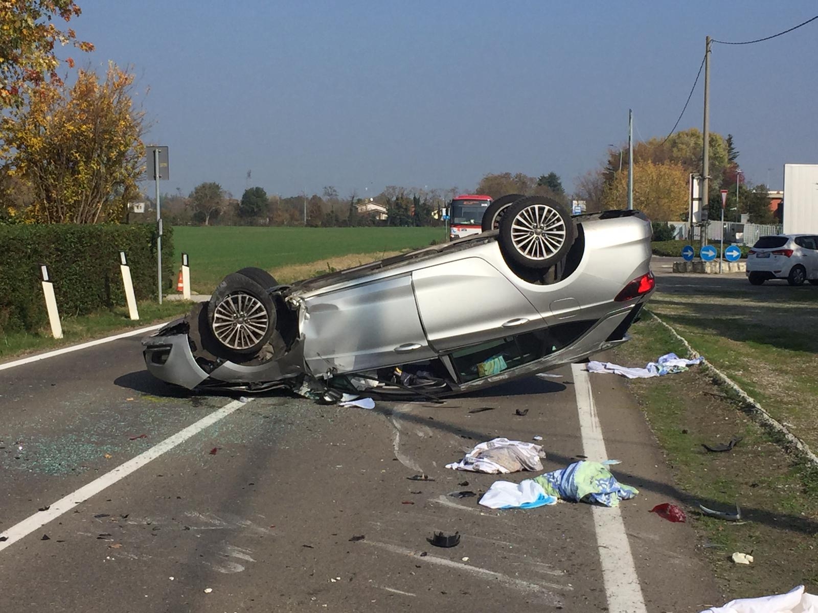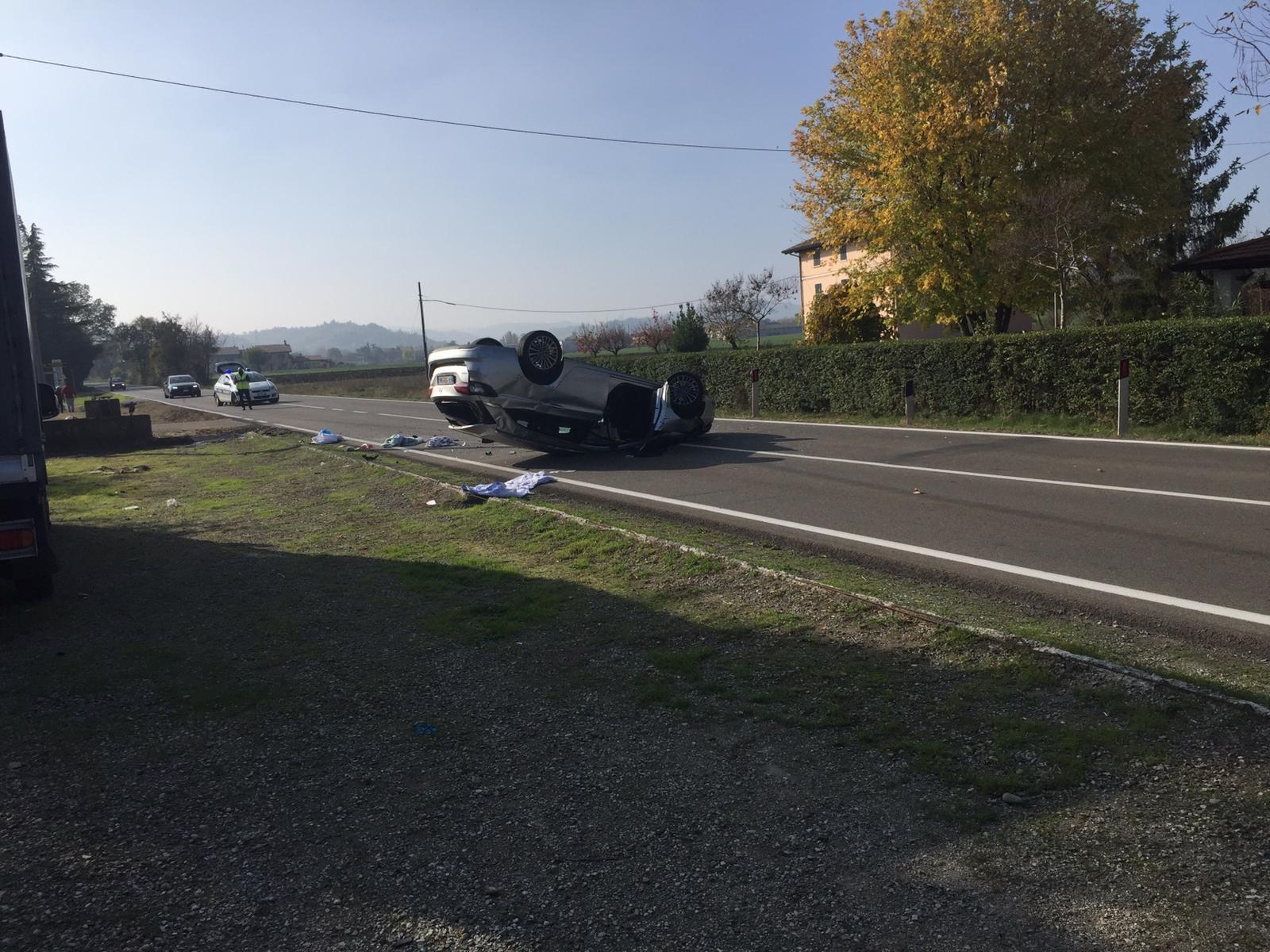 incidente stradale foto Quattro Castella ferito auto ribaltata Orologia