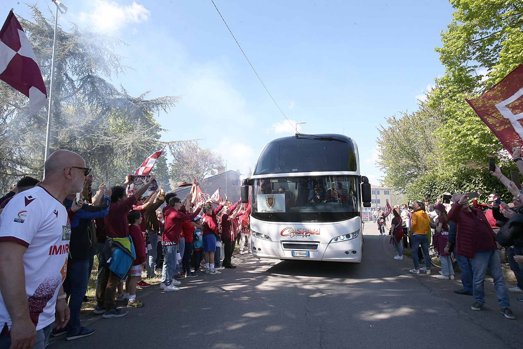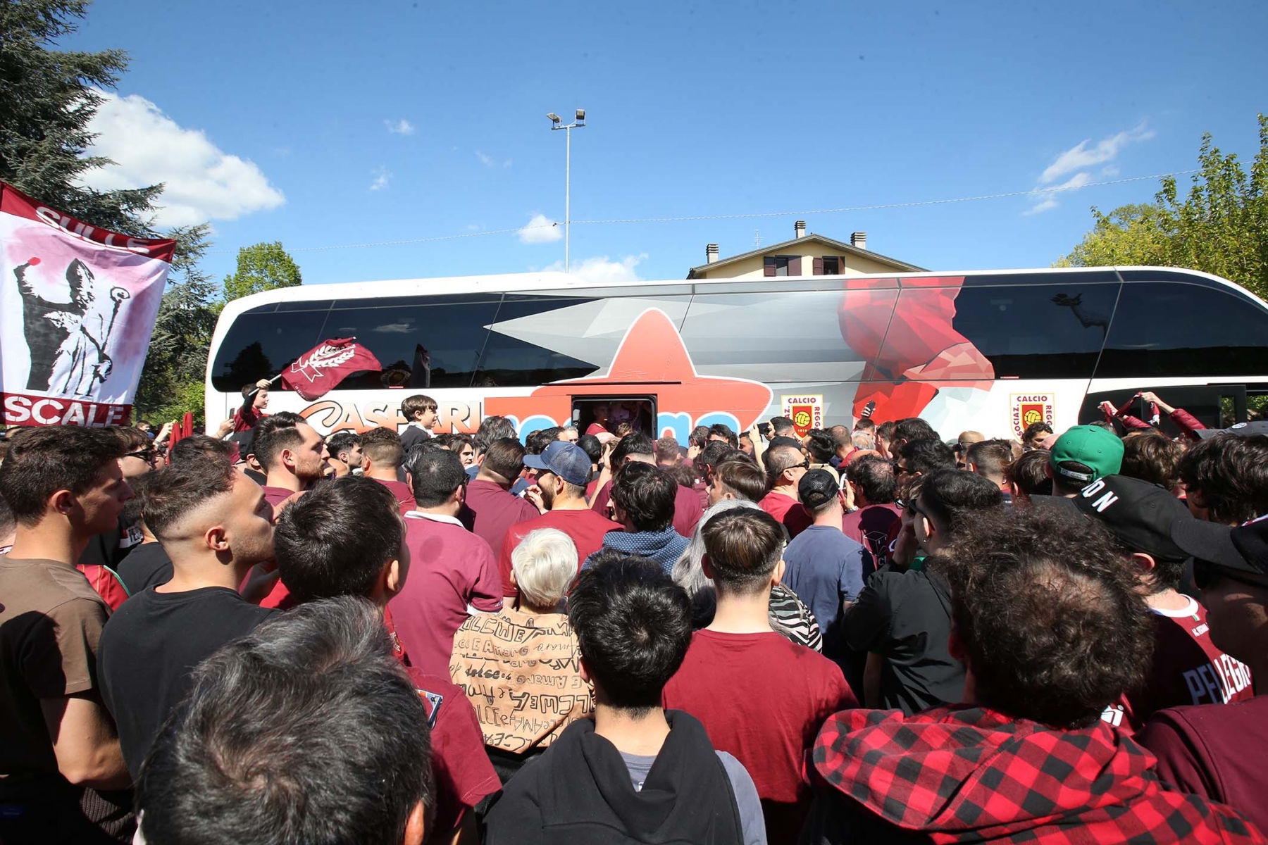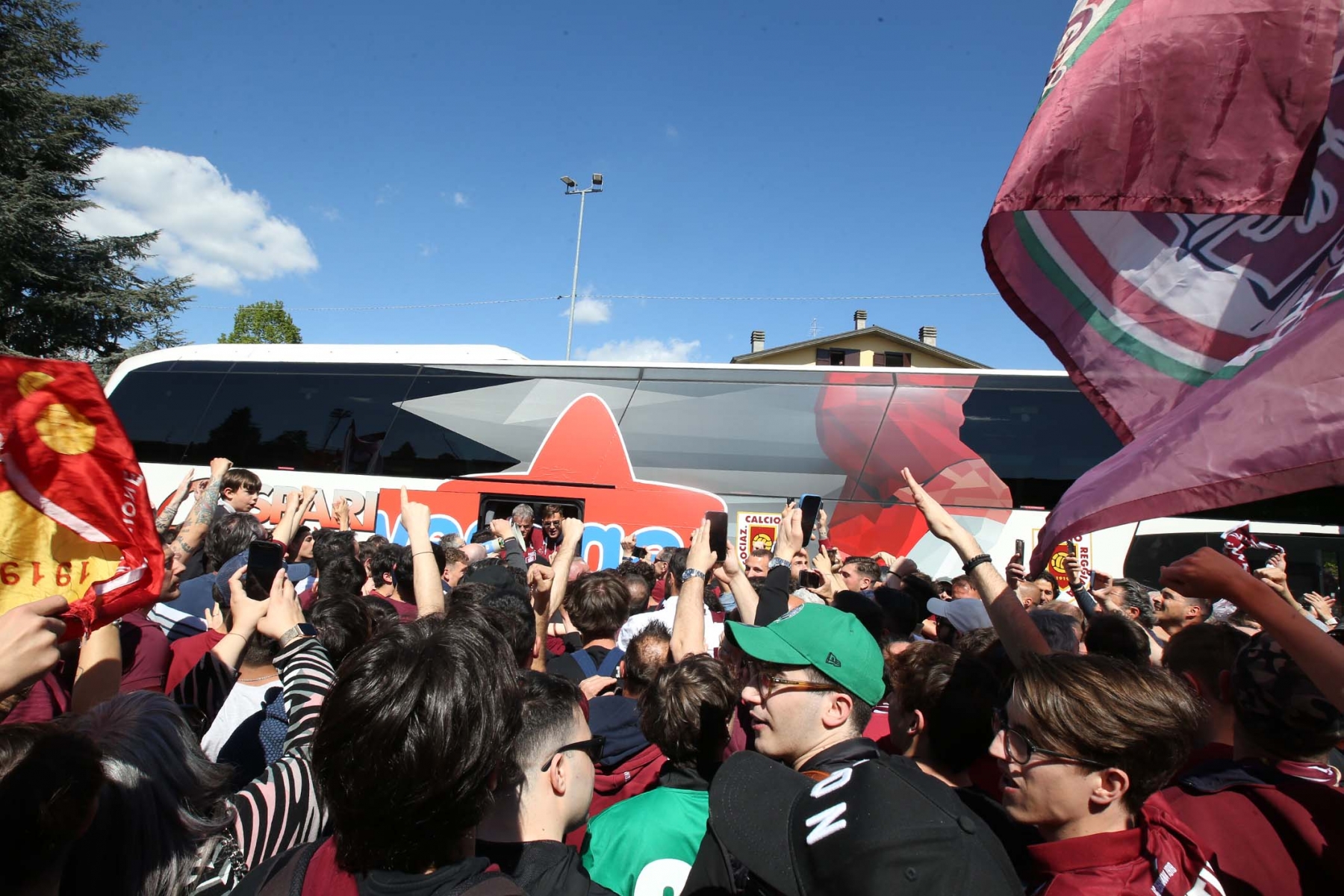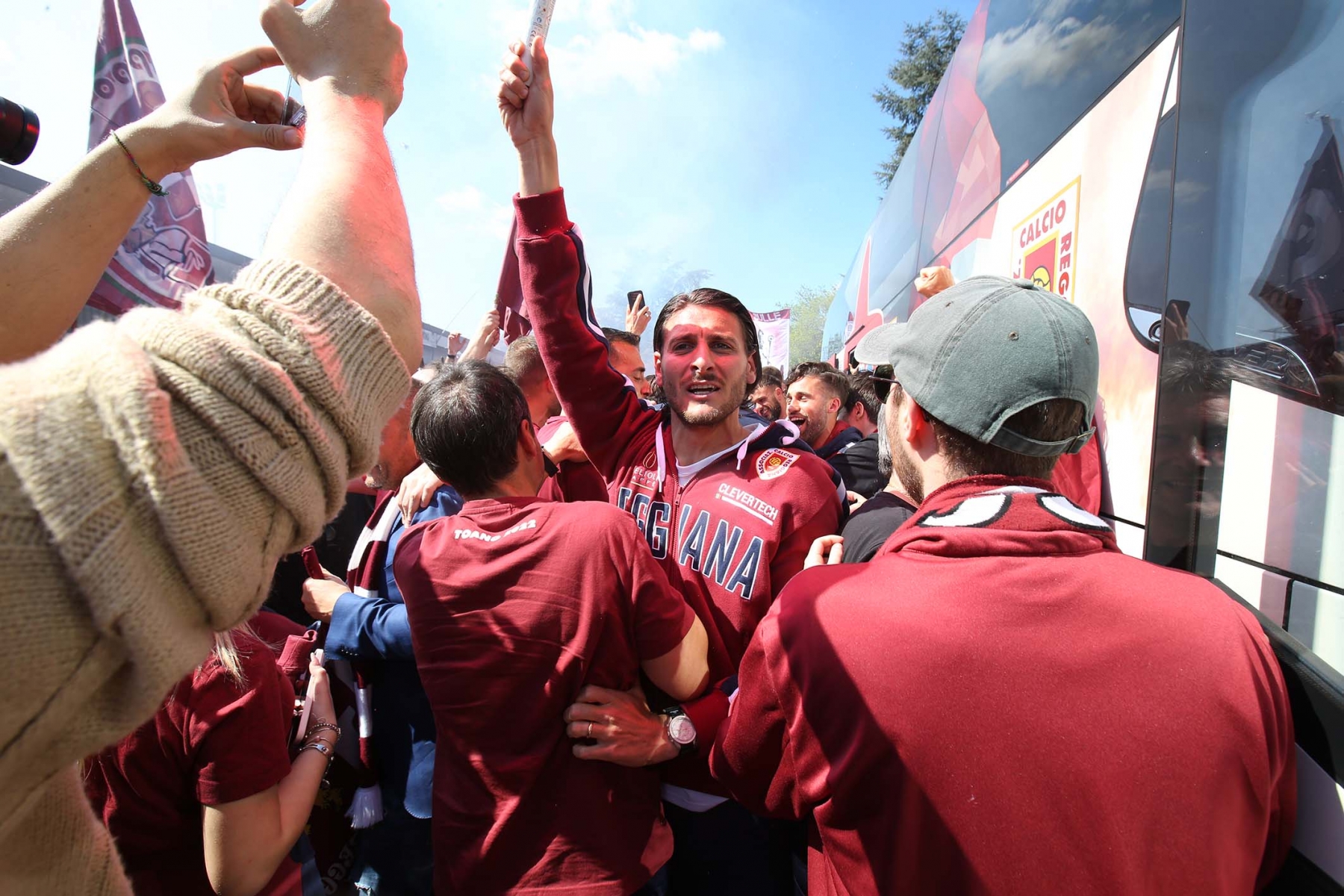 C’erano oltre 600 persone ad aspettare dirigenti e giocatori di rientro da Olbia dopo la sbornia promozione. Fumogeni, cori e tanta emozione per un campionato vinto dopo 15 anni