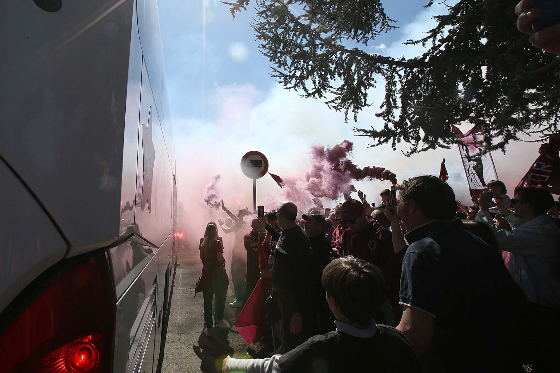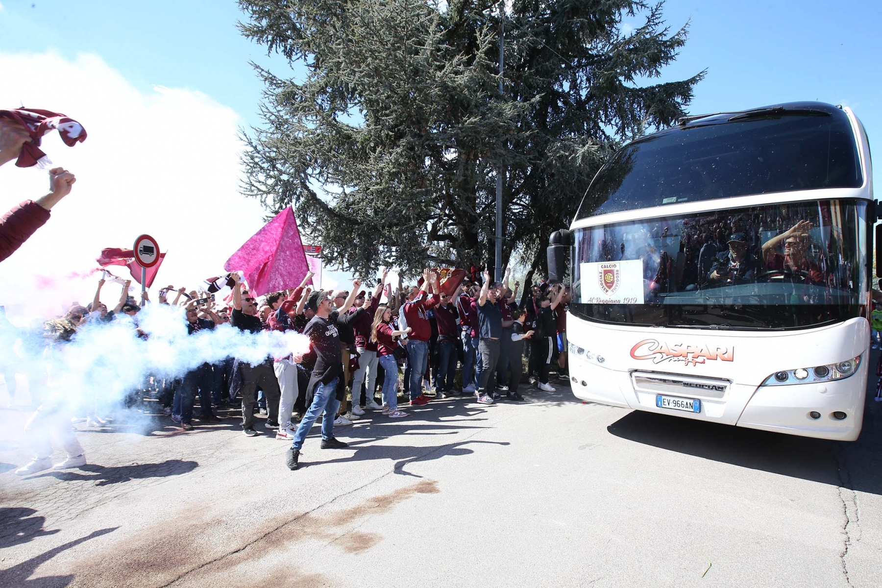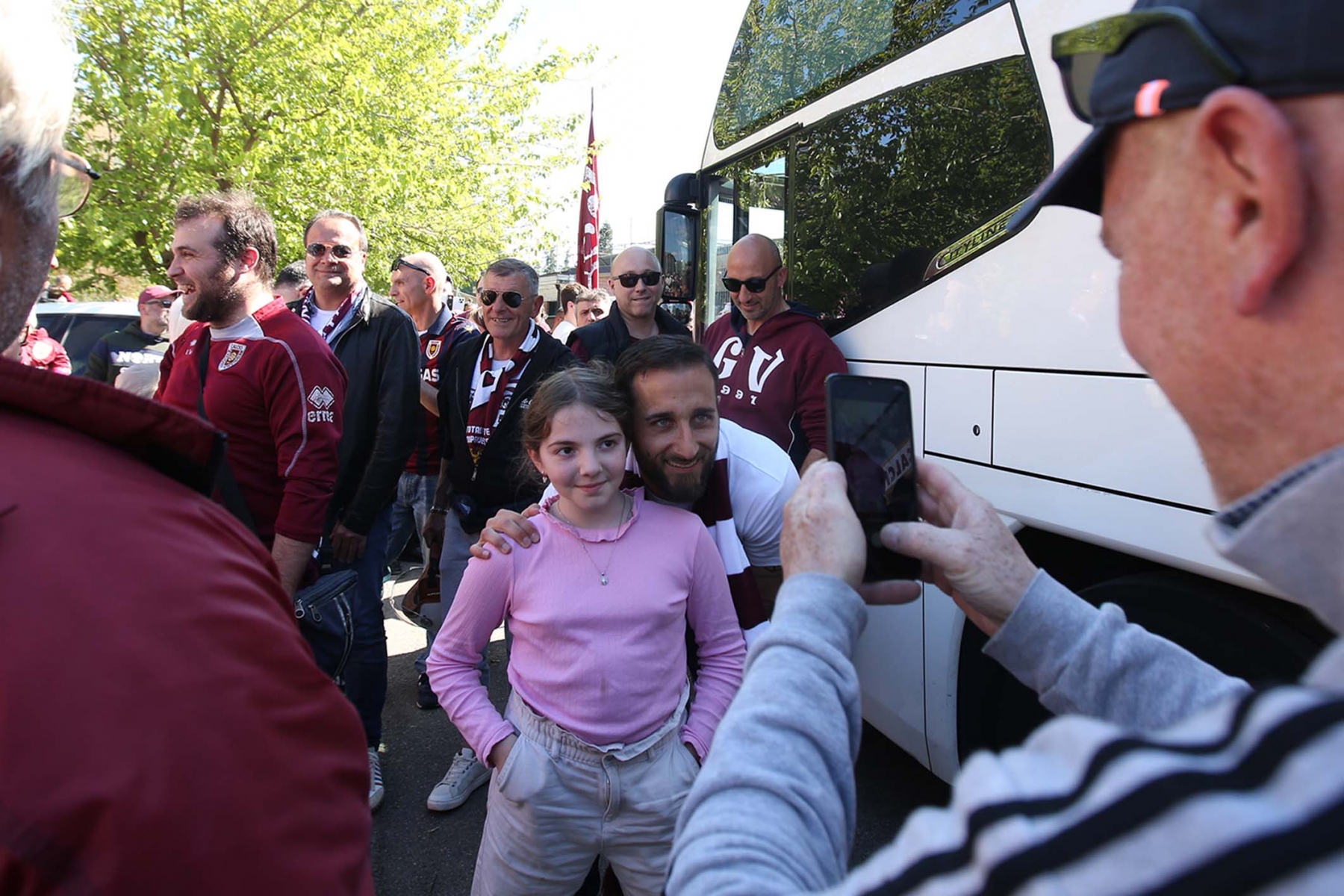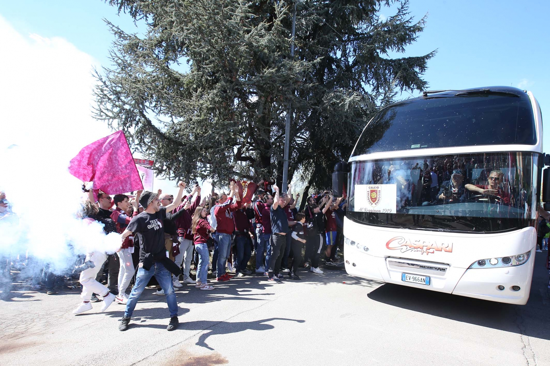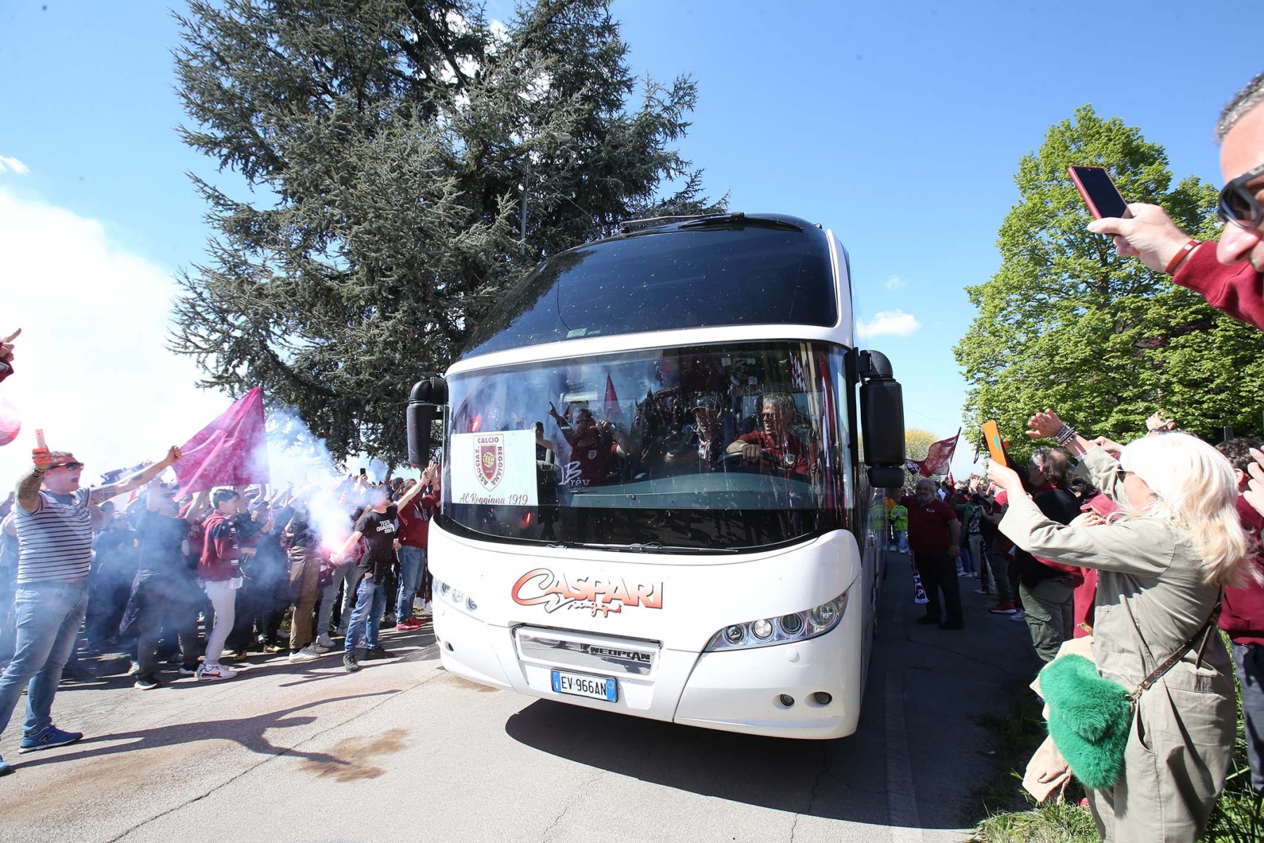 C’erano oltre 600 persone ad aspettare dirigenti e giocatori di rientro da Olbia dopo la sbornia promozione. Fumogeni, cori e tanta emozione per un campionato vinto dopo 15 anni