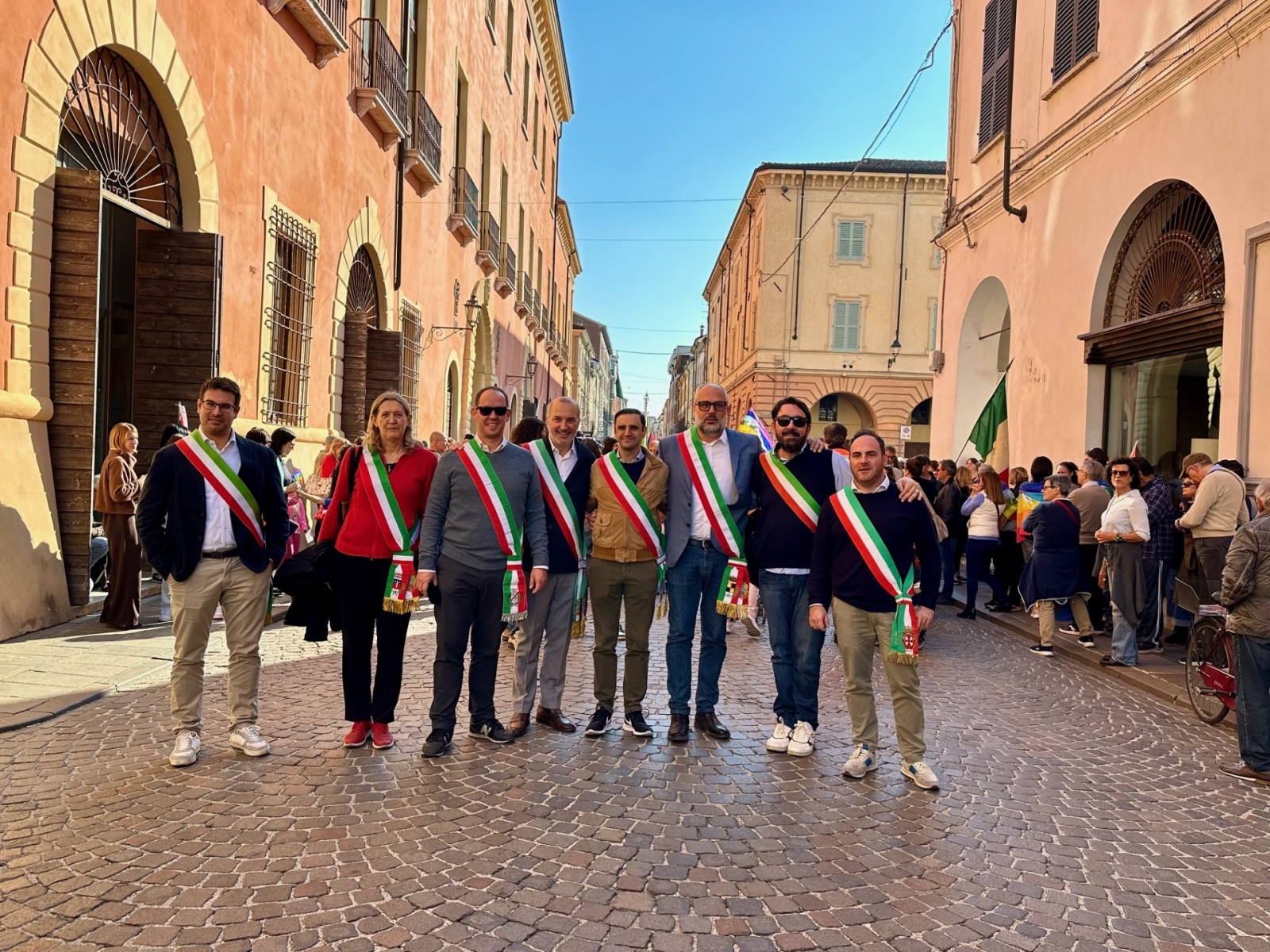 GUASTALLA (Reggio Emilia) – Oltre 1000 persone, con scuole e associazioni degli 8 Comuni dell’Unione, hanno partecipato oggi pomeriggio alla marcia della pace della Bassa Reggiana. In prima fila tutti i sindaci con la fascia tricolore che si sono ritrovati alle 15 in piazza Mazzini a Guastalla, luogo di partenza del corteo che è arrivato fino al Lido Po.