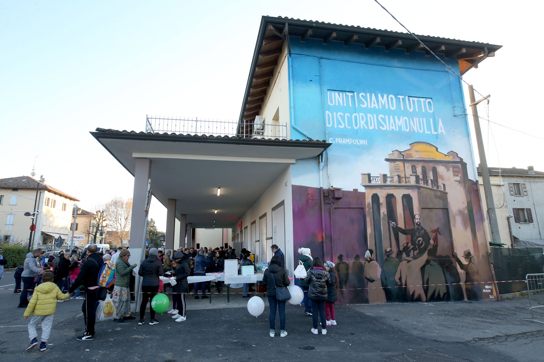 Il motto coniato da Prampolini, “Uniti siamo tutto, divisi siamo nulla”, ora campeggia su un murales sulla parete laterale dello stabile.