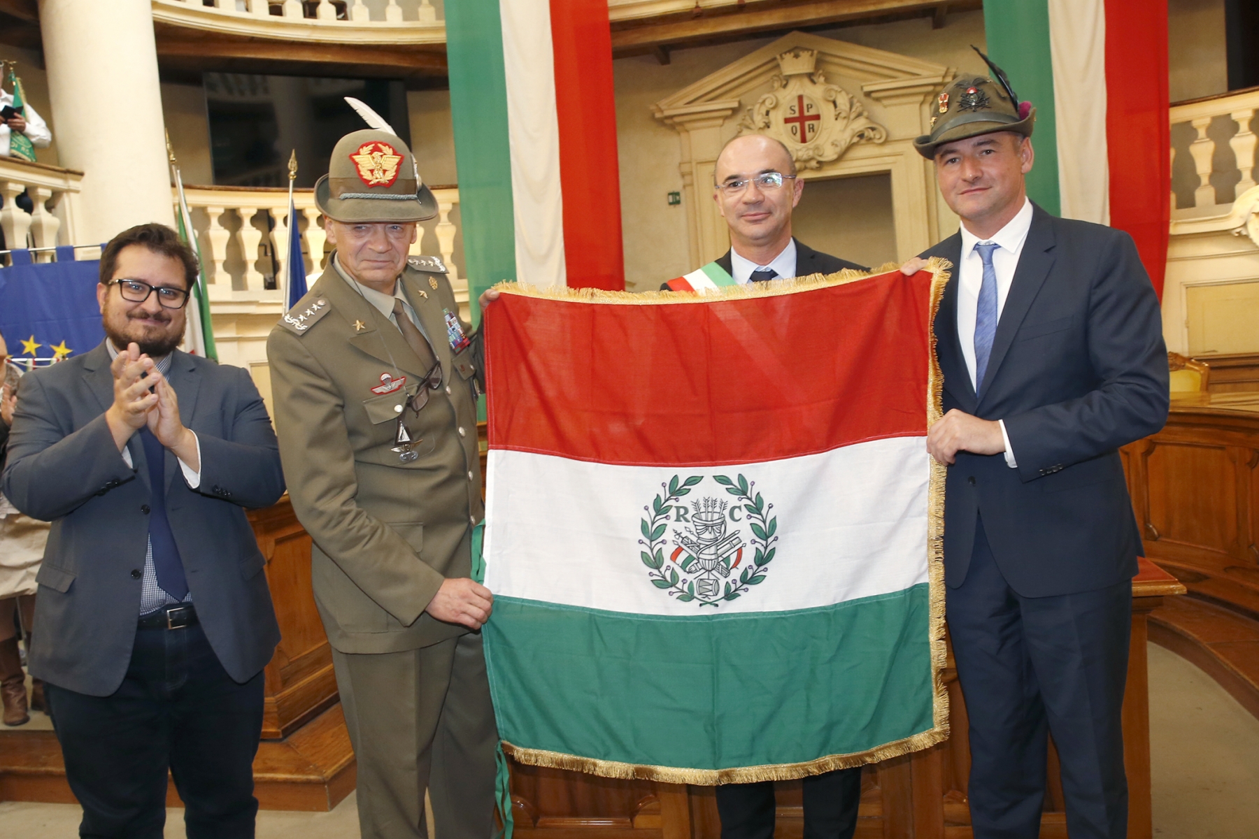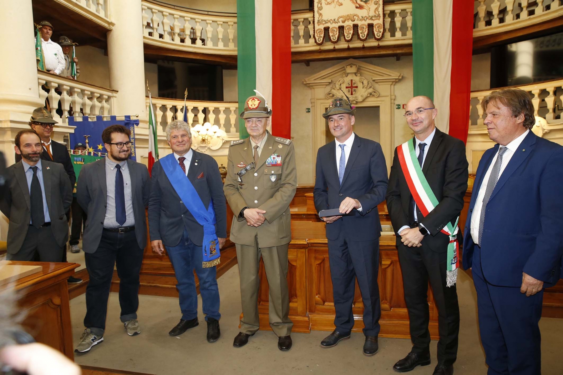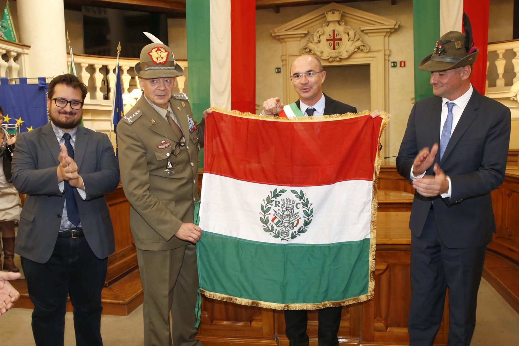 REGGIO EMILIA – Giornata conclusiva del raduno provinciale degli alpini: questa mattina le penne nere hanno attraversato in corteo la città, poi una cerimonia in Piazza della Vittoria. Nella tarda mattinata in Municipio la consegna del primo Tricolore al Comandante del corpo, il generale Ignazio Gamba. Un dono in occasione del 150 anniversario della fondazione del corpo.