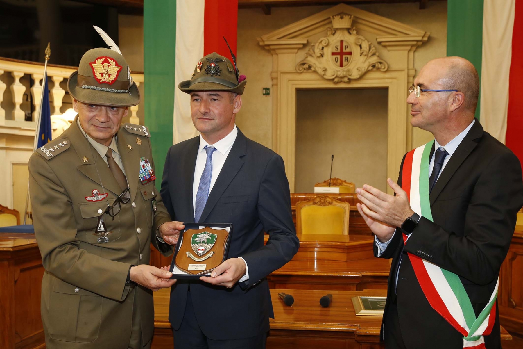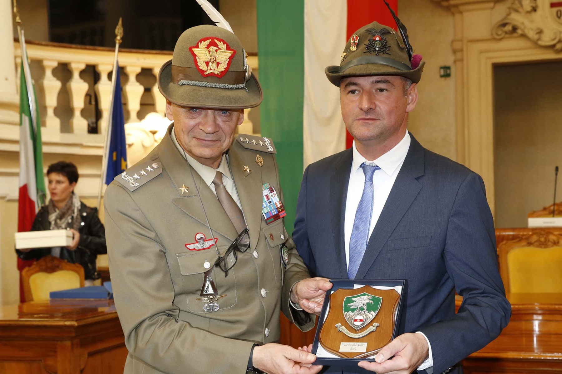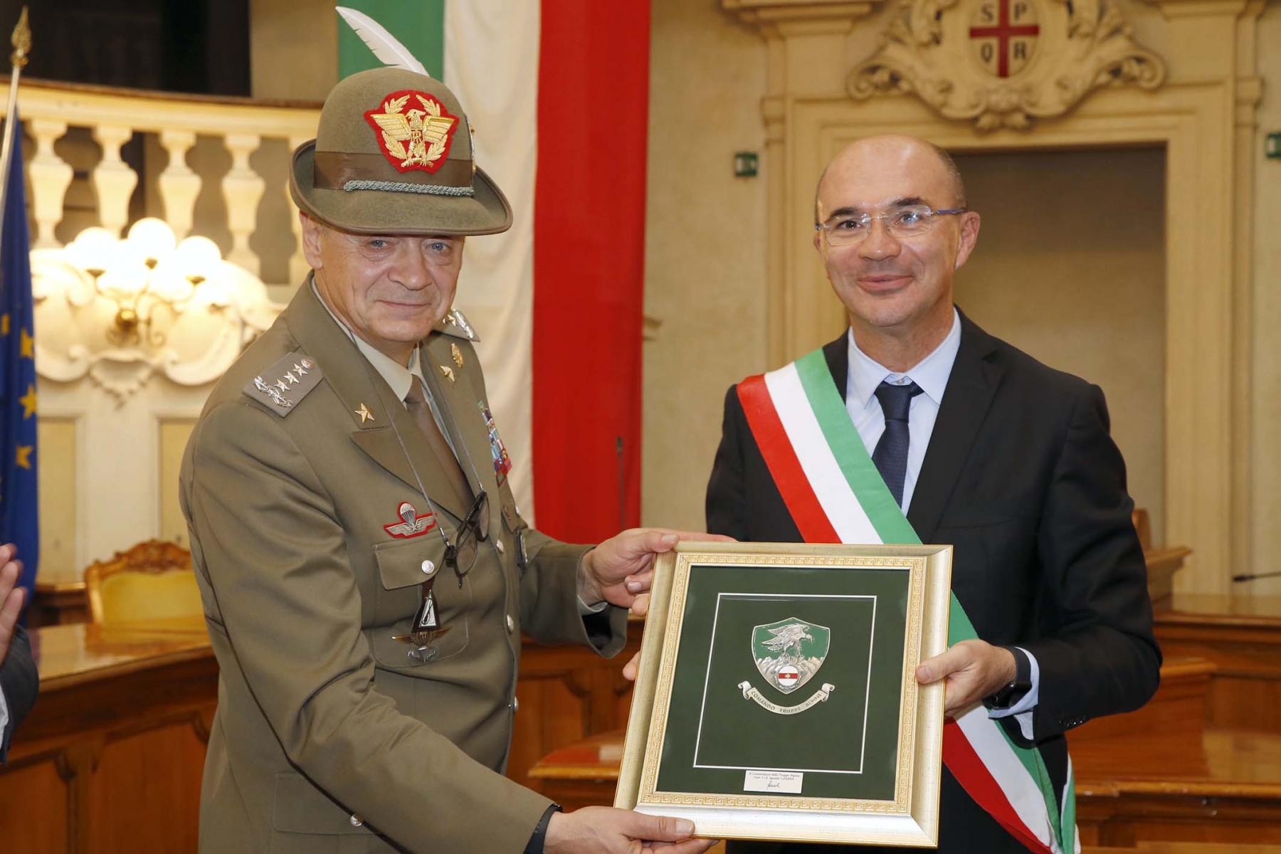REGGIO EMILIA – Giornata conclusiva del raduno provinciale degli alpini: questa mattina le penne nere hanno attraversato in corteo la città, poi una cerimonia in Piazza della Vittoria. Nella tarda mattinata in Municipio la consegna del primo Tricolore al Comandante del corpo, il generale Ignazio Gamba. Un dono in occasione del 150 anniversario della fondazione del corpo.