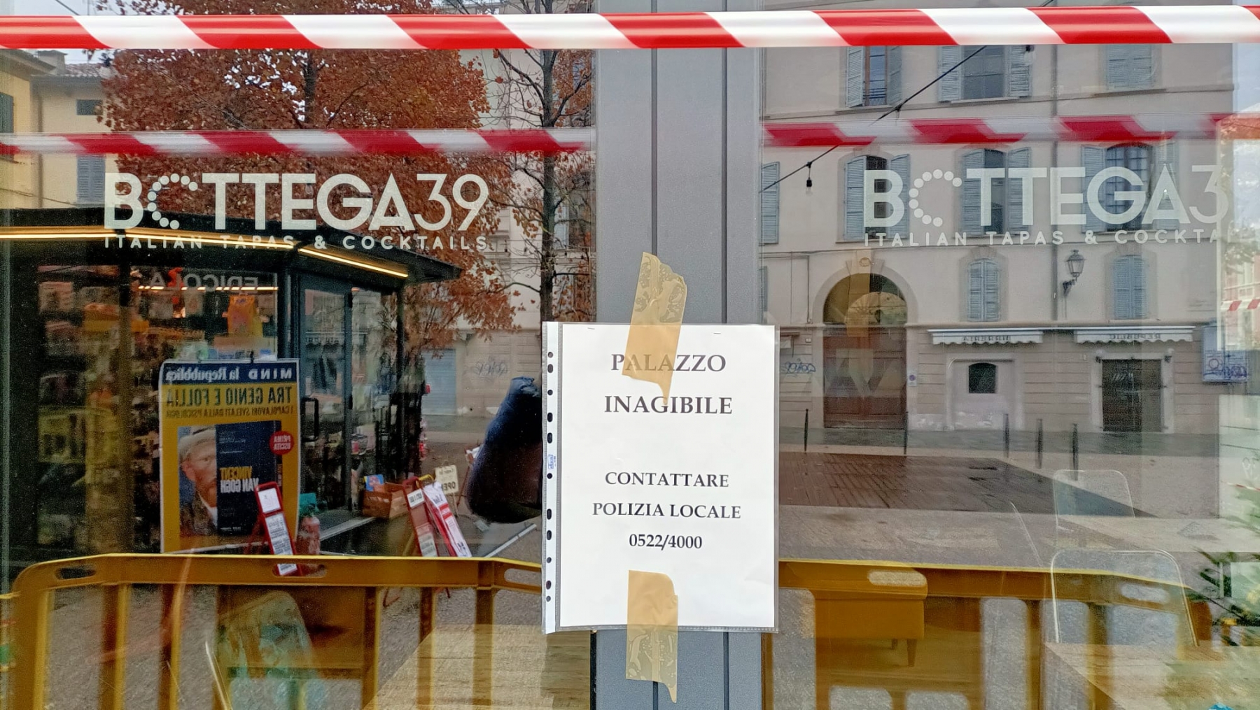 REGGIO EMILIA – A mezzogiorno passato, si intravedeva la luce ancora accesa dalla finestra al primo piano aperta per metà. Segno della fretta e dell’agitazione con cui tutto è stato lasciato così com’era. E’ la casa il cui soffitto è crollato perché è crollata una trave portante. E’ successo poco prima delle 3 della notte, in pochi minuti chi era in quell’appartamento ma anche chi era in buona parte dello stabile ha abbandonato le proprie cose ed è uscito. L’appartamento in questione si trova in via Ariosto 16, ma anche i civici 1 e 2 di via Monte Cusna sono stati fatti evacuare.