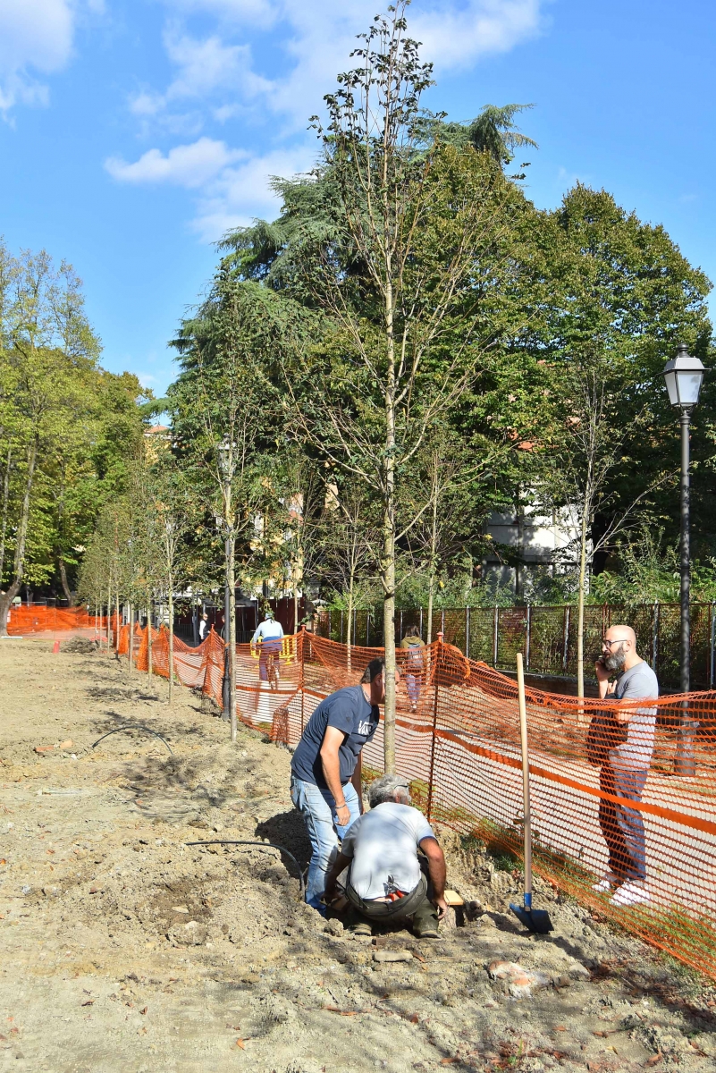 REGGIO EMILIA – Sono cominciati i lavori di riqualificazione e di incremento del verde di viale Umberto I previsti nell’ambito delle opere di restauro e valorizzazione della Passeggiata Settecentesca, parte del Progetto Ducato Estense. Lungo il viale, asse portante della passeggiata tra la città e la Reggia di Rivalta, verranno messi a dimora, a partire da sabato 9 ottobre, i primi 40 alberi dei 189 previsti in sostituzione di esemplari malati o instabili e per rinverdire alcuni spazi vuoti del viale. Al termine dei lavori gli esemplari presenti sul viale arriveranno a un totale di 555. I 189 nuovi alberi hanno un’altezza media di circa 5 metri.