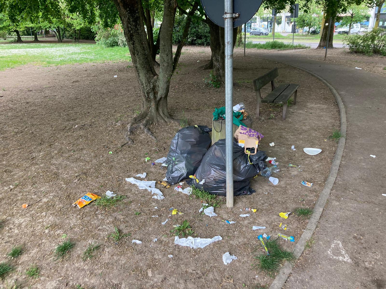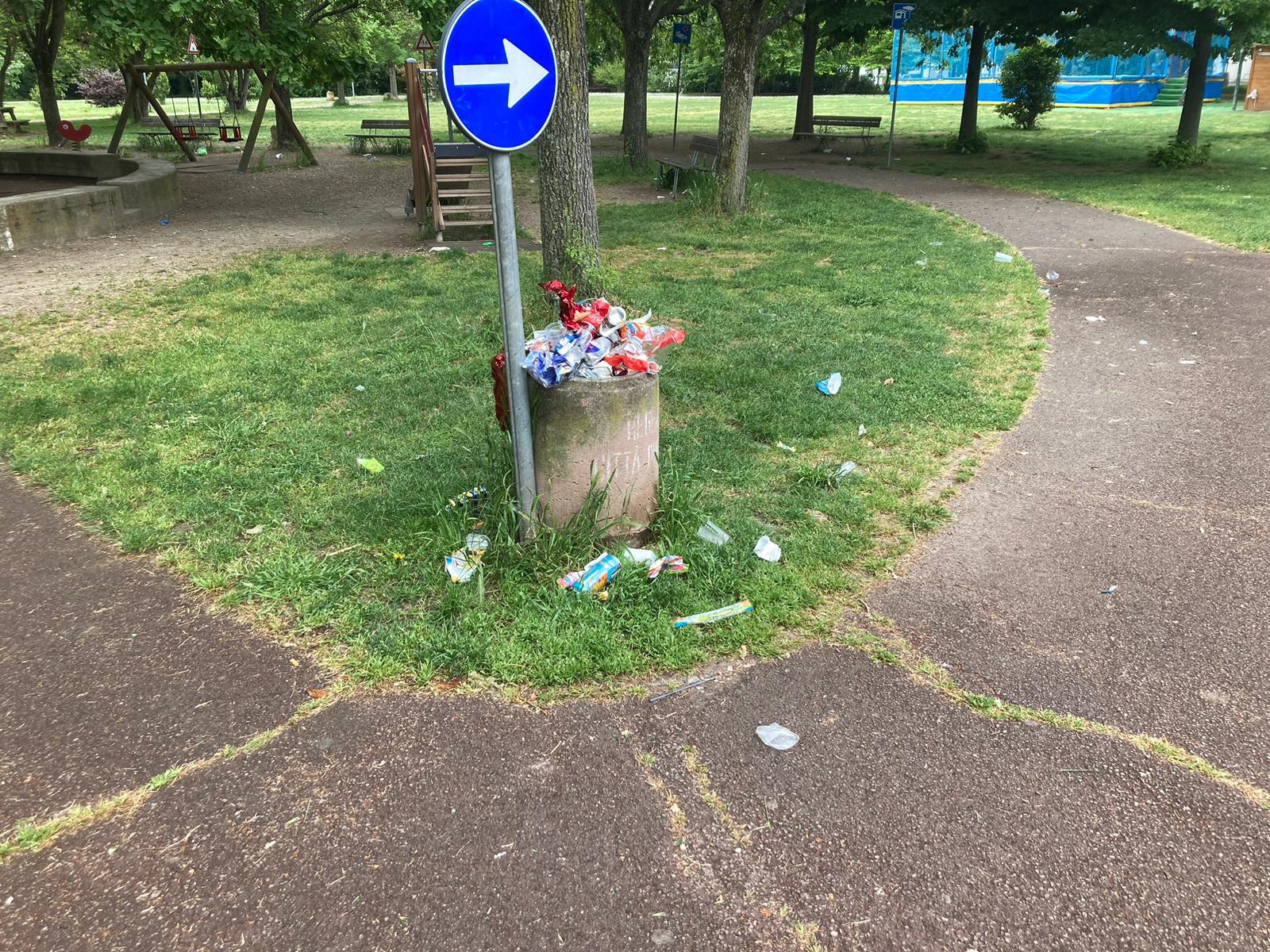 Reggio Emilia: rifiuti sparsi ovunque al parco “Il Carrozzone”. FOTO