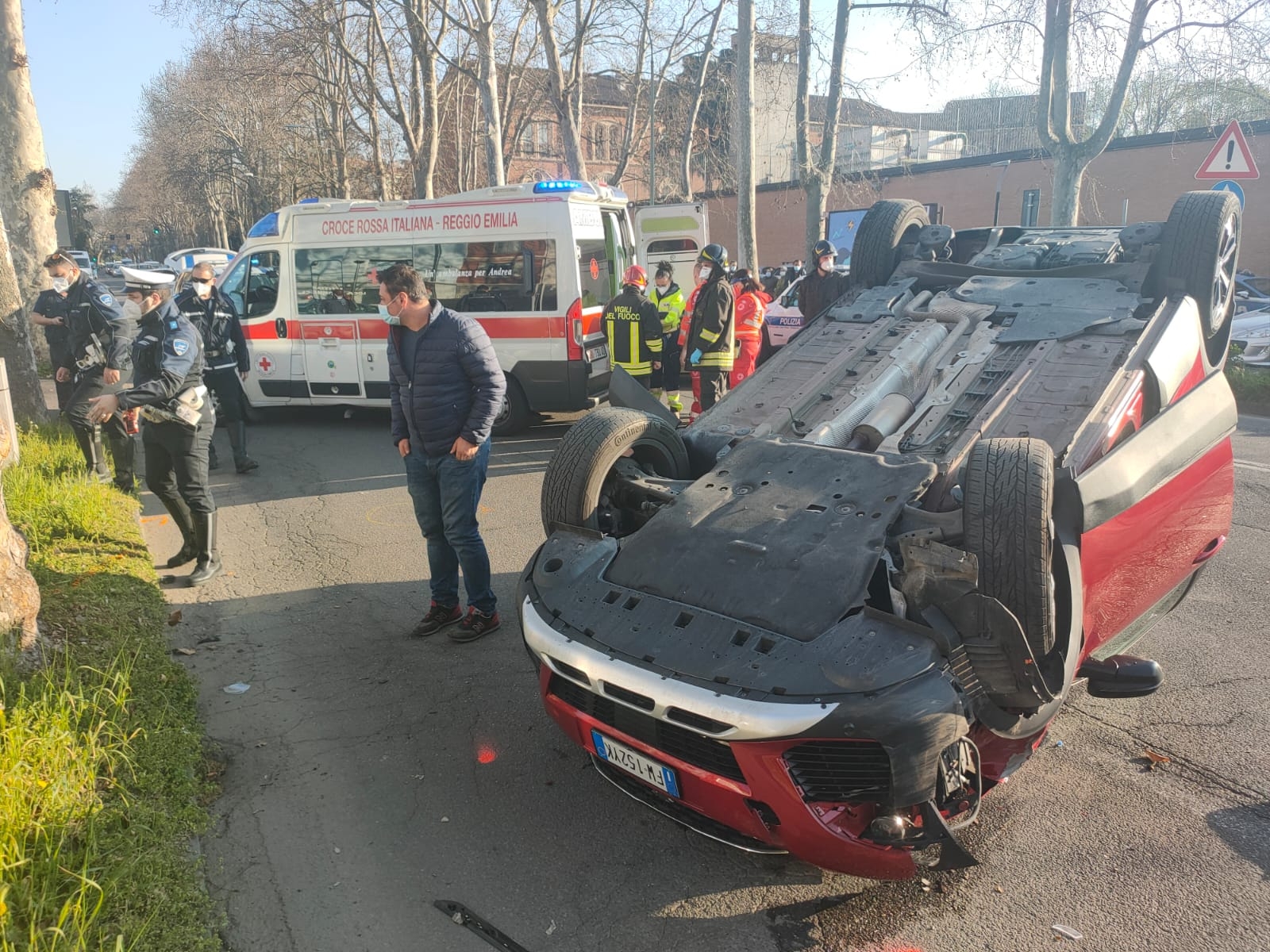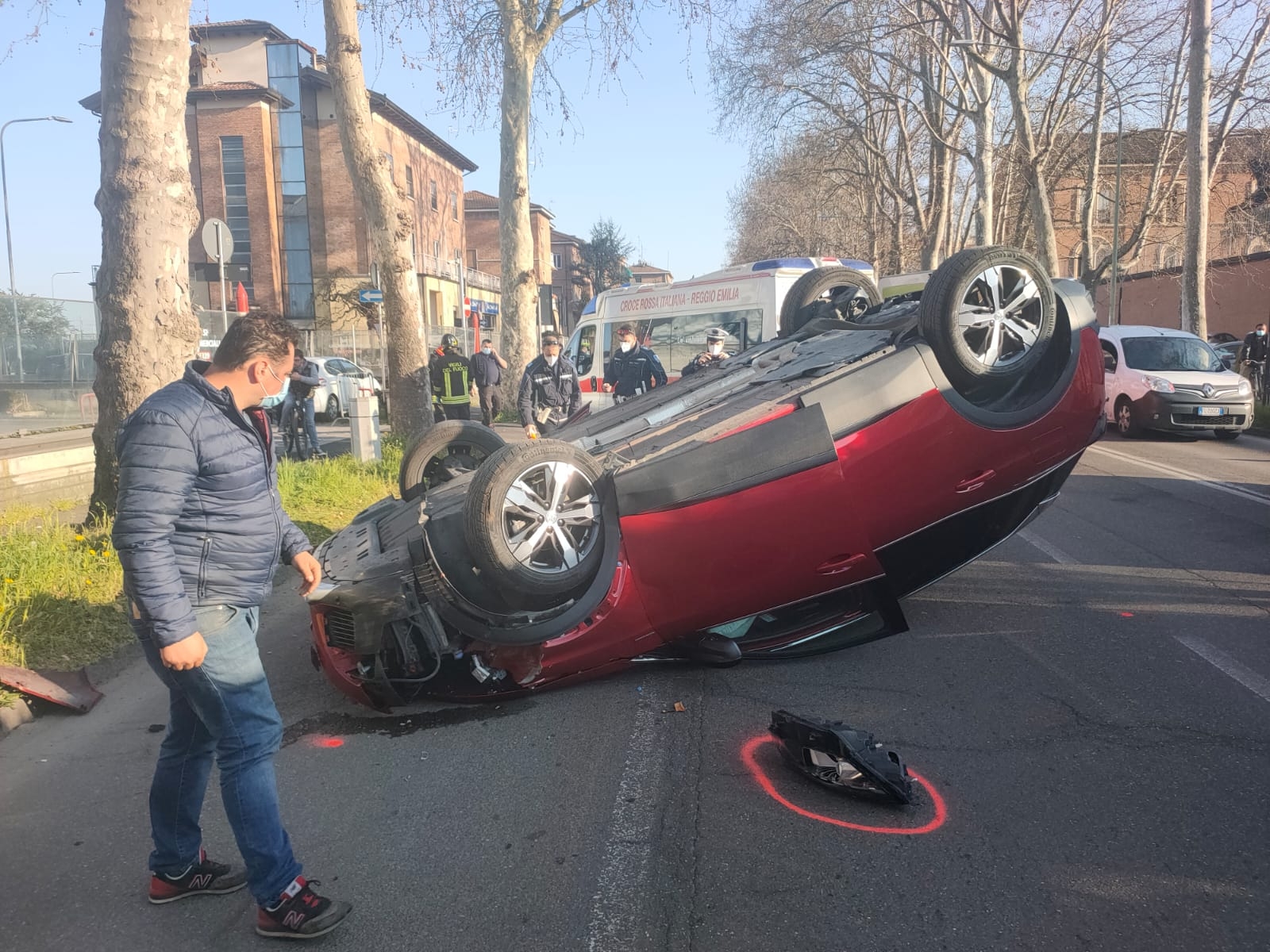 Reggio Emilia incidente auto cappottata circonvallazione bloccataReggio Emilia: si cappotta da sola, circonvallazione bloccata. FOTO
