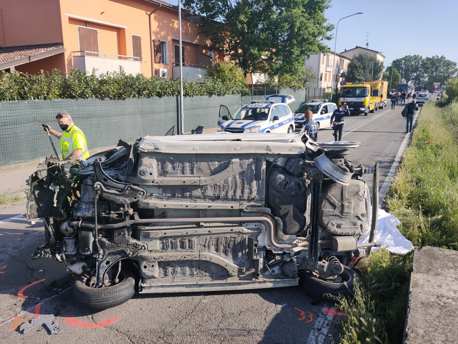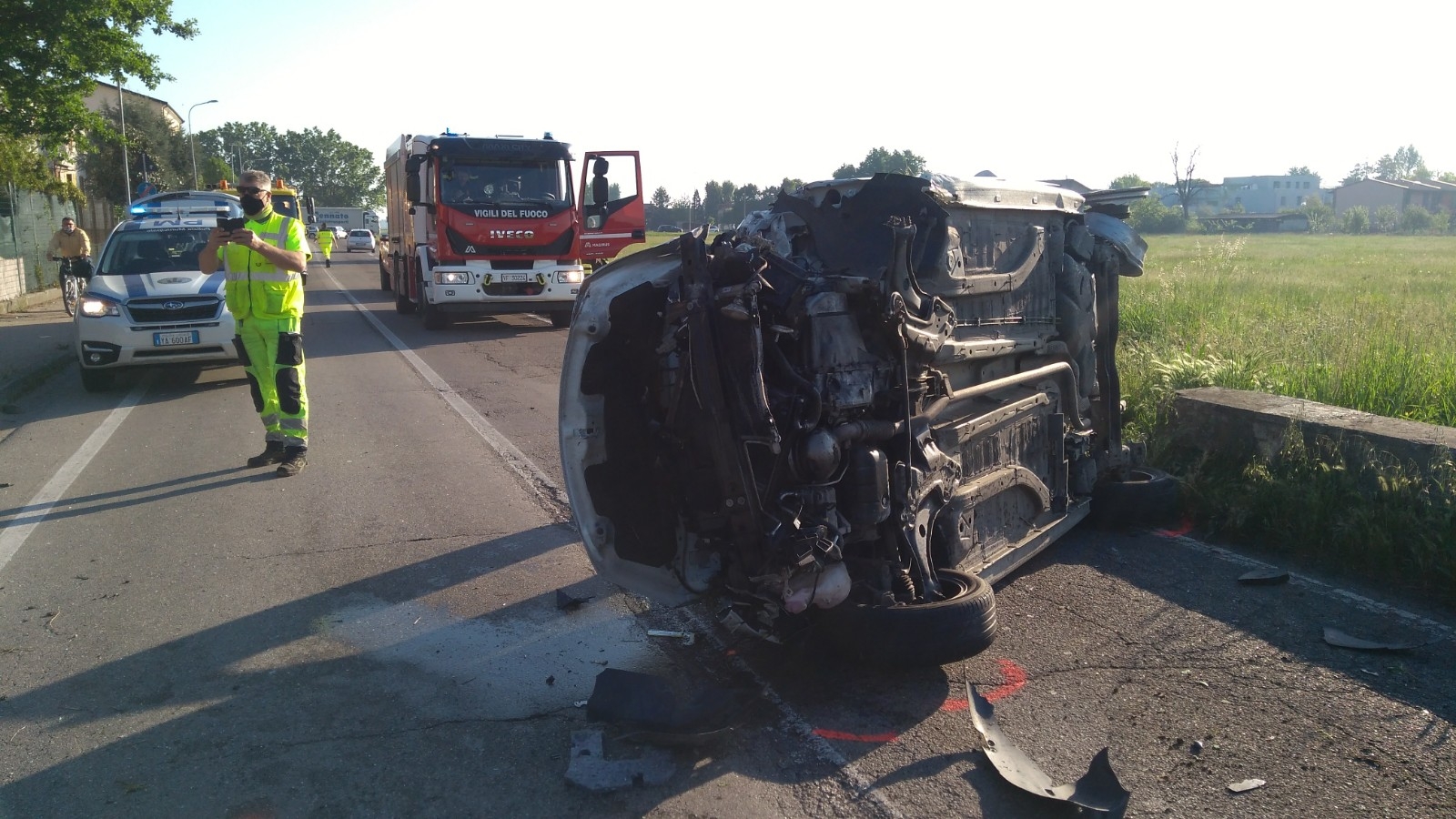 Sul posto si sono portati i soccorsi inviati dal 118, che hanno tentato ogni manovra, ma invano. In via Lasagni anche i vigili del fuoco per estrarre il corpo dalle lamiere dell’auto. Alla base della tragica carambola ci sarebbe la perdita di controllo del mezzo in fase di sorpasso: le ruote di sinistra della Citroen, secondo le testimonianze delle decine di automobilisti che in quel momento percorrevano la via, sarebbero fuoriuscite dalla banchina rendendo ingovernabile la vettura.