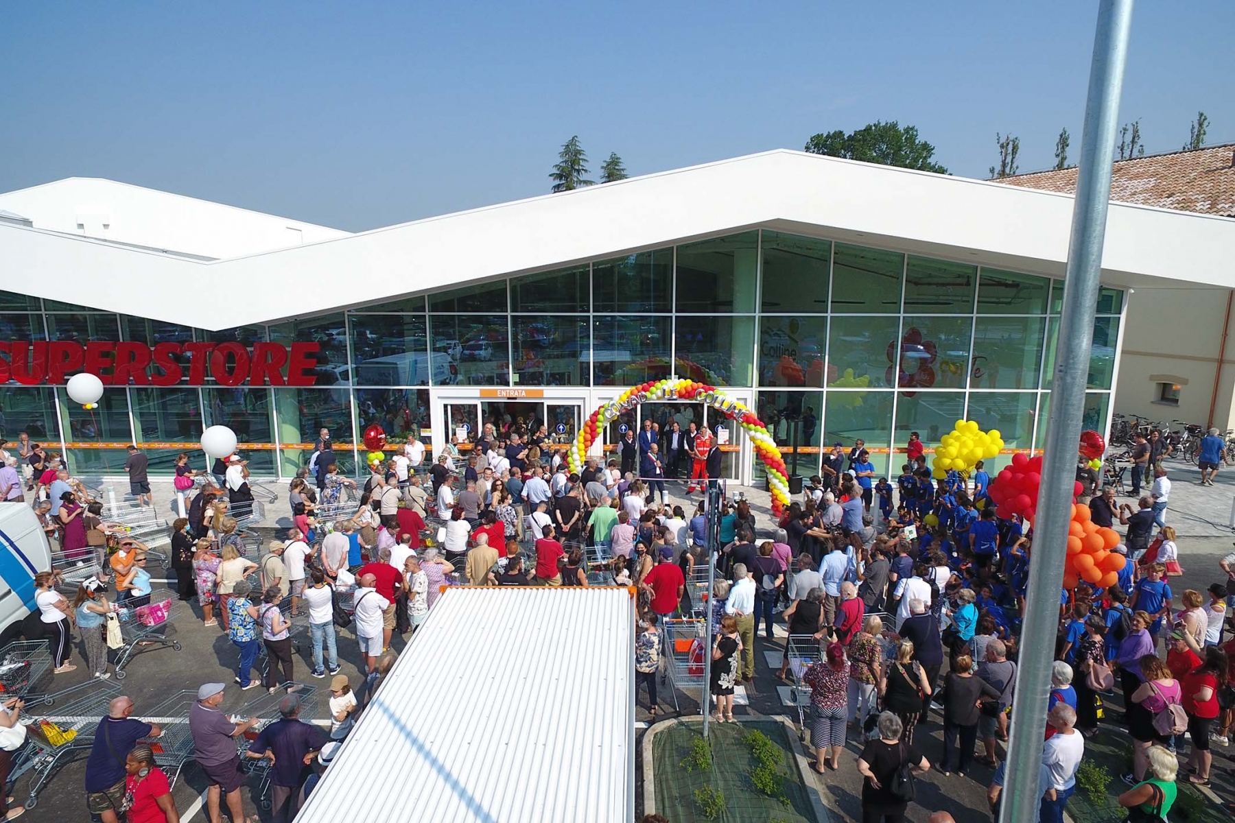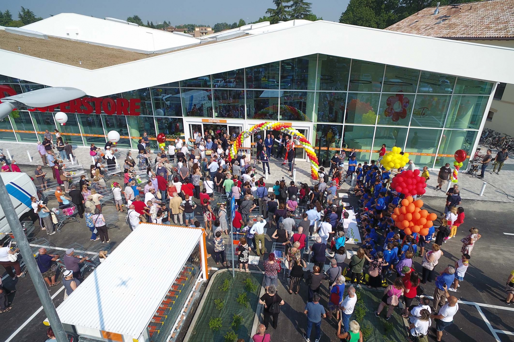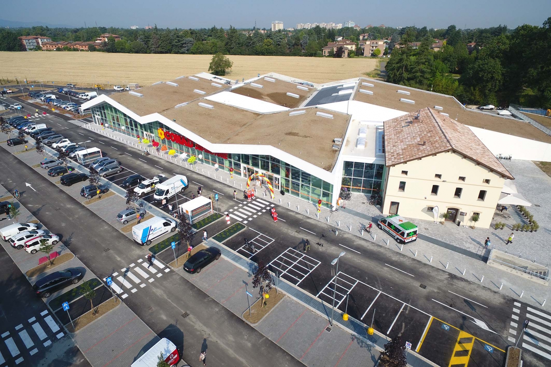 Un progetto innovativo, sviluppato dallo studio Lauro Sacchetti Associati, che punta al risparmio energetico, al contenimento delle emissioni CO2 e, in particolar modo, al rispetto e alla valorizzazione del paesaggio circostante. Presenti tutti i servizi: l’ortofrutta a libero servizio, ampio spazio alla pescheria con il pesce fresco e confezionato, la friggitrice e lo stabulario, la macelleria assistita e a libero servizio, il forno che prepara pane fresco durante tutto l’arco della giornata e la pizza, i salumi e i latticini, la gastronomia con tanti piatti pronti.