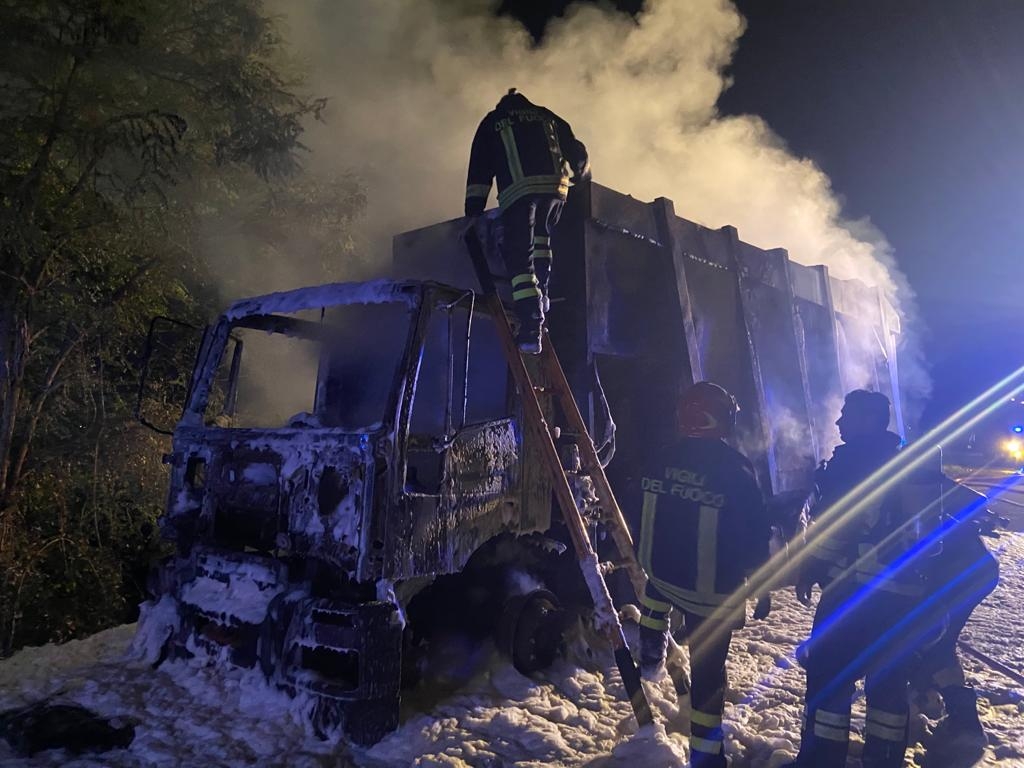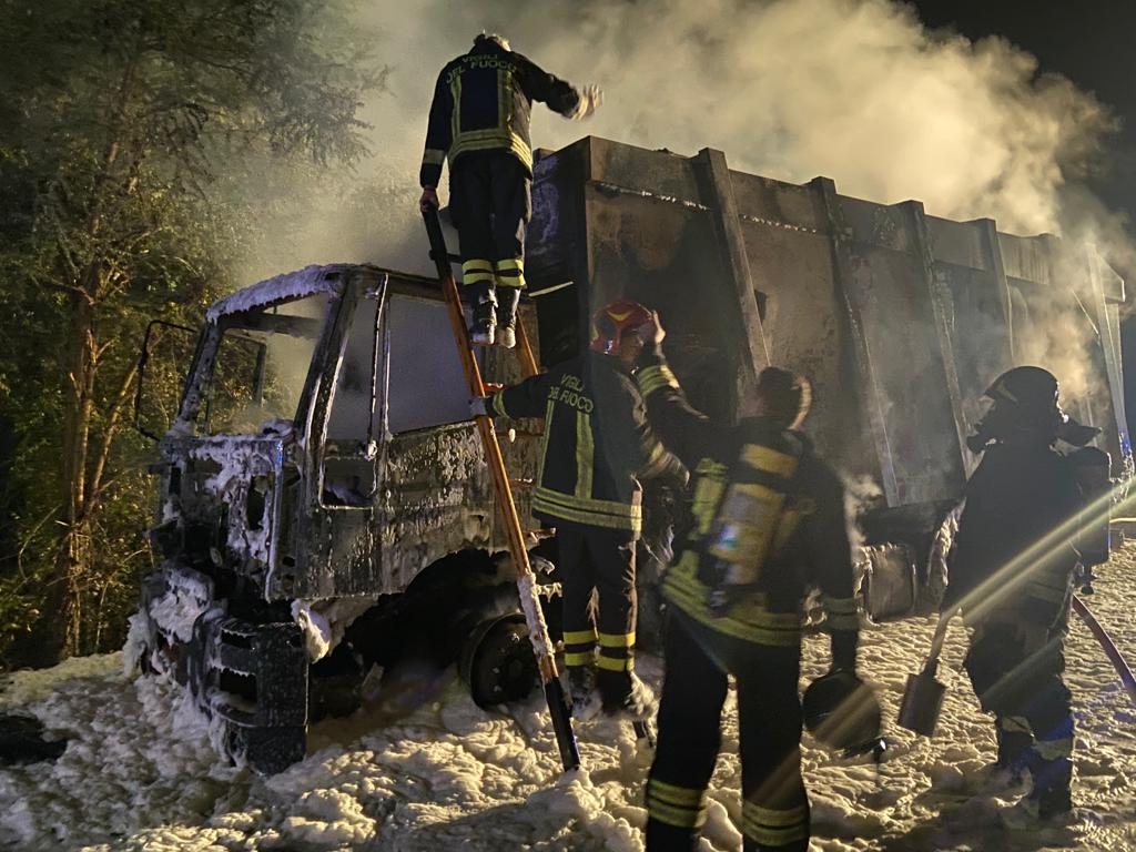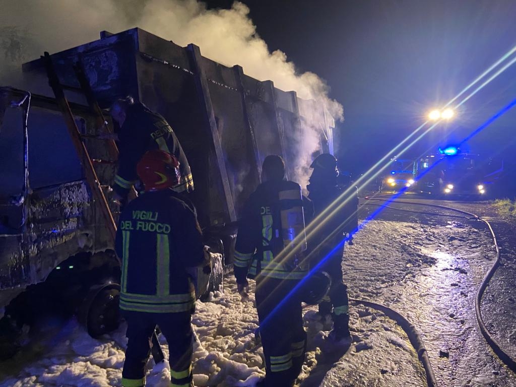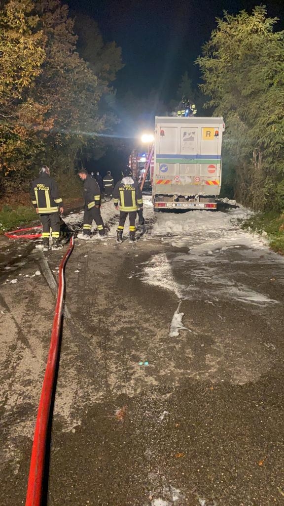 TOANO (Reggio Emilia) – Vigili del fuoco al lavoro nella notte a Toano, in via dell’Aigume, per spegnere l’incendio che ha distrutto un camion compattatore della raccolta rifiuti. Tre le squadre impegnate, arrivate da Castelnovo Monti e da Sassuolo dopo la chiamata giunta al 115 all’1,34. Le fiamme sono partite dalla cabina. Sul posto anche i carabinieri.