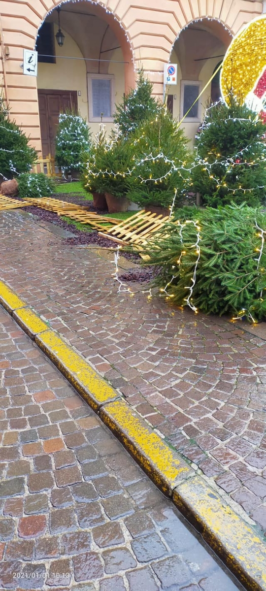 1 gennaio 2021Qualcuno, nella notte, ha buttato a terra recinzioni e alberi di Natale posizionati nelle vie del centro del comune della Bassa. I residenti postano scatti su Facebook: “Quanta tristezza nel vedere tutto questo”