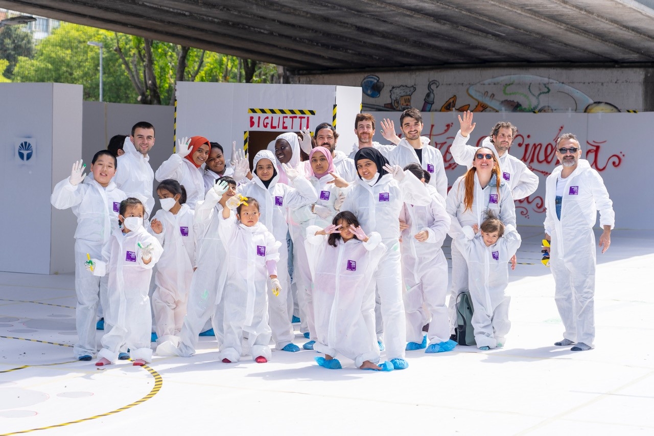 REGGIO EMILIA – La cultura e l’arte possono offrire una seconda vita a luoghi urbani trascurati e percepiti come insicuri. Lo dimostra la trasformazione avvenuta sotto il cavalcavia di via Turri che oggi, sabato 4 maggio, è stato lo scenario del Wrapping Day, un’azione collettiva per “incartare” (in inglese “wrapping”) e ridisegnare lo spazio pubblico sotto il ponte, piloni compresi. Alle prime luci del mattino il team di “Sottoponte”, progetto di rigenerazione urbana a base culturale promosso dall’associazione culturale Cinqueminuti e Binario49, ha ricoperto l’area con enormi fogli di cartone bianco, che durante l’intera giornata sono diventati una tavolozza per centinaia di persone di tutte le età. Insieme hanno lasciato il proprio segno su carta con pennarelli, bombolette e vernici, per creare un disegno condiviso e partecipato in scala reale del possibile futuro di questo spazio urbano. Tra le nuove funzioni e i nuovi valori di relazione che sono stati immaginati da chi abita e frequenta il quartiere, in particolare le generazioni più giovani, ci sono una zona riservata al cinema e agli spettacoli, un’altra dedicata allo sport e un angolo ristoro dove incontrarsi e stare insieme.